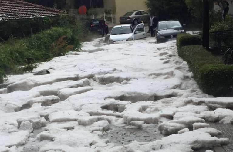 Ιδιαίτερα σφοδρή ήταν η χαλαζοπτωση που σημειώθηκε το μεσημέρι της Παρασκευής στην Κοζάνη. Ενδεικτικό της έντασης είναι ότι δεκάδες αυτοκίνητα εγκλωβίστηκαν σε κεντρικούς δρόμους της πόλης! Χαρακτηριστικες οι εικόνες που ακολουθούν από το kozanimedia και το cofeeradiogr.com αλλά και μέσω της ομάδας μας στο Facebook.