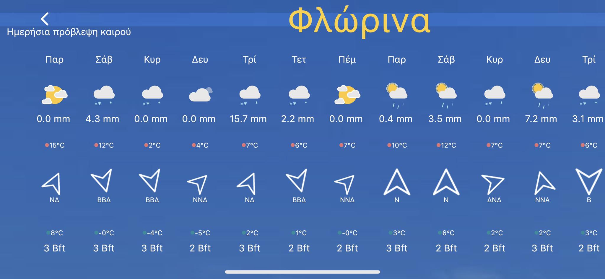 Οι χαμηλές θερμοκρασίες θα διατηρηθούν ως και την Τετάρτη- Πέμπτη περίπου γιατί μετά ξανά ανεβαίνουν λίγο, λόγω του ότι οι άνεμοι στρέφονται εκ νέου σε νοτιάδες, ανεβάζοντας λιγάκι και πάλι την Θερμοκρασία.