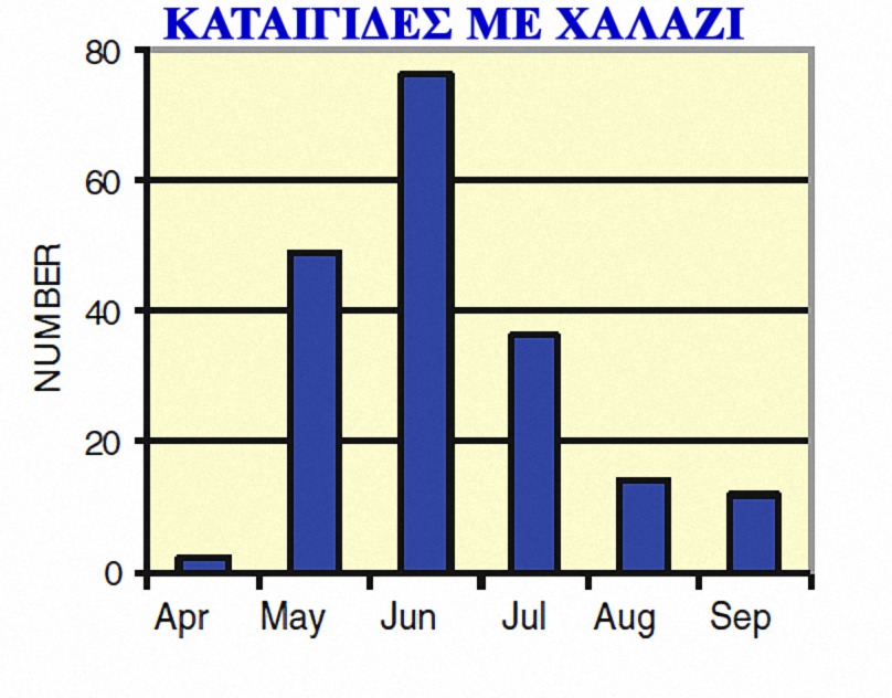 •Υπηρξαν 189 καταιγιδες που εδωσαν χαλαζι.