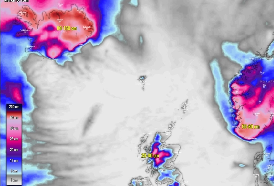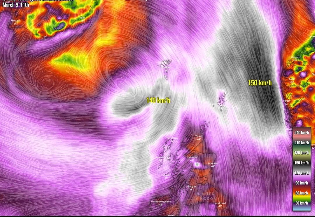 Σε κόκκινο συναγερμό βρίσκεται τις επόμενες ώρες έως το μεσημέρι της Πέμπτης η βόρεια Ευρώπη, καθώς δύο διαδοχικοί εξωτροπικοί κυκλώνες, θα σαρώσουν το Ηνωμένο Βασίλειο και την Νορβηγία, αλλά και την Ισλανδία. Οι άνεμοι αναμένεται να φτάσουν και τα 150km/h, ενώ έχει ήδη εκδοθεί προειδοποίηση για ακραίο κυματισμό στις ακτές, ύψους ακόμη και 16 μέτρων! Παράλληλα, σφοδρές χιονοπτώσεις στα ορεινά των χωρών αυτών, θα αφήσουν έως και 100cm φρέσκου χιονιού.