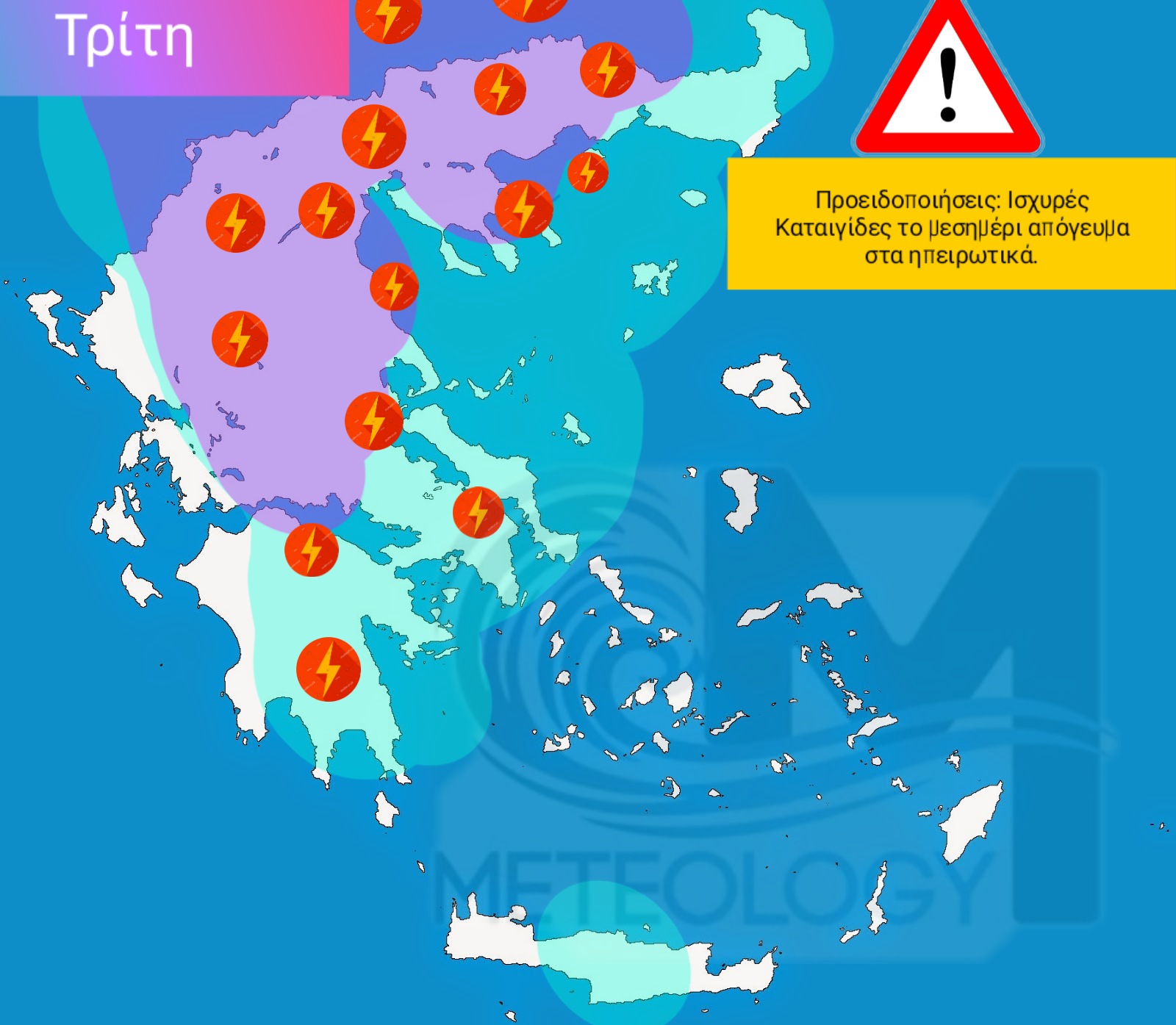 Ισχυρές καταιγίδες την Τρίτη