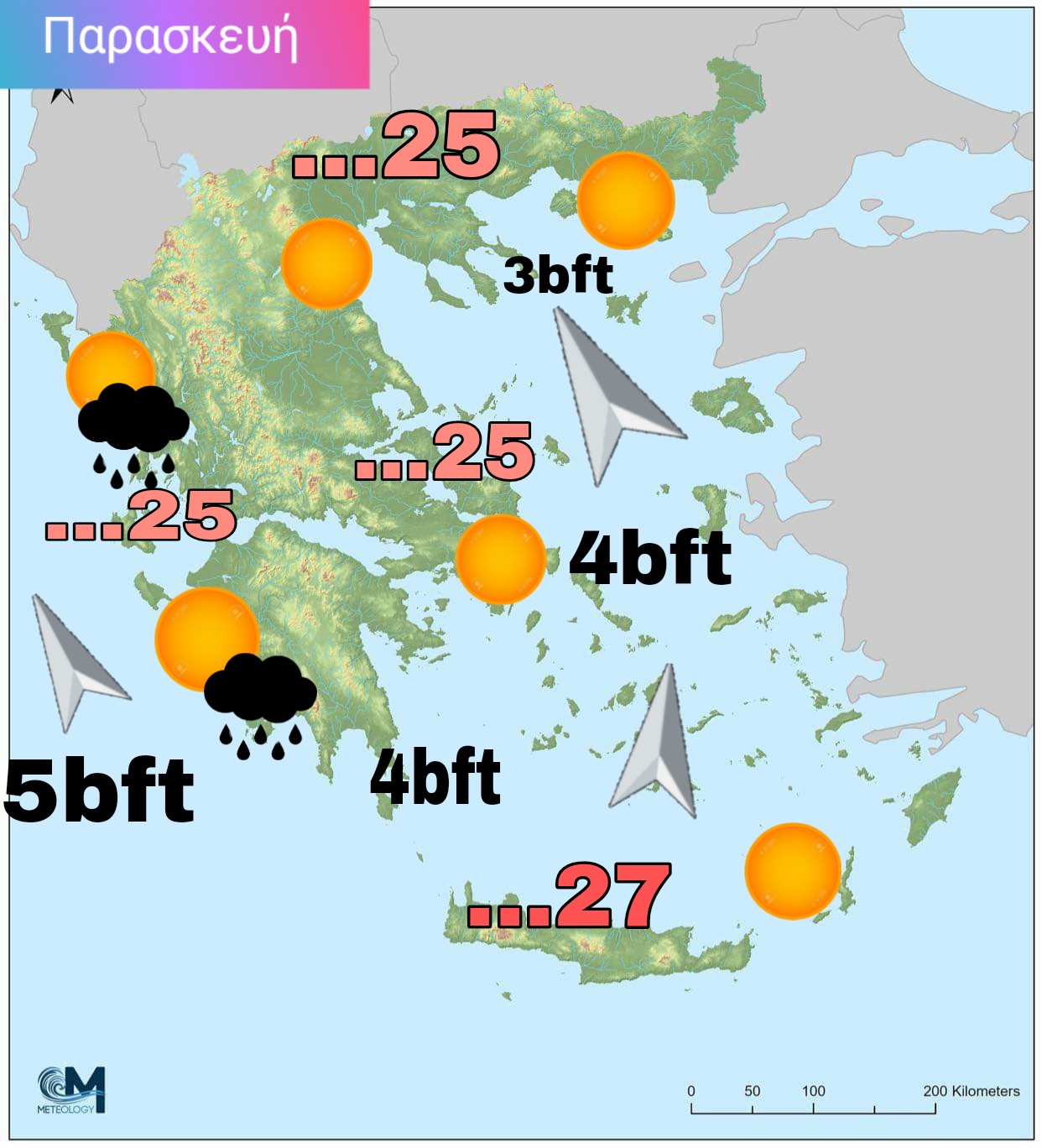 Βελτιωμένος ο καιρός σήμερα σε όλη σχεδόν την χώρα με την ηλιοφάνεια να κυριαρχεί. Η θερμοκρασία σε σταδιακή άνοδο. Εξαίρεση αποτελεί η δυτική Ελλάδα σήμερα, όπου κάποιες μπόρες ή μεμωνομενες καταιγίδες θα επηρεάσουν κυρίως την Ήπειρο, μέχρι και τις απογευματινές ώρες. Οι άνεμοι από νότιες διευθύνσεις, έως 4 μποφόρ στο Αιγαίο, έως 5 στο Ιόνιο.
