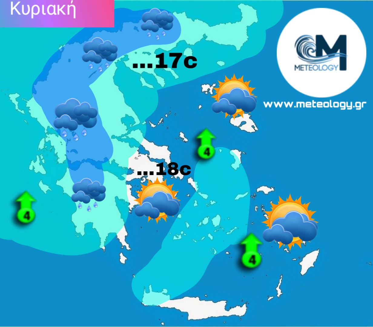 Αλλάζει ο καιρός την Κυριακή σε πολλές περιοχές της χώρας μας. Την λιακάδα του Σαββάτου, θα διαδεχθεί αυξημένη συννεφιά, κυρίως στα ηπειρωτικά. Η συννεφιά αυτή, θα καταφέρει μάλιστα να δώσει και τοπικές βροχές κατά τόπους. Τα αξιολογότερα φαινόμενα, φαίνεται να πέφτουν στις περιοχές κατά μήκος της Πίνδου. Άνεμοι νότιοι ασθενείς. Αραιές νεφώσεις κατά περιόδους αυξημένες στην Θεσσαλονίκη, ενώ προς το απόγευμα, θα αρχίσει να βρέχει κατά τόπους. Ασθενείς μεταβλητοί οι άνεμοι, με την θερμοκρασία στους 16 βαθμούς. Αραιές νεφώσεις και στην Αττική, ενώ το βράδυ ίσως βρέξει πρόσκαιρα. Νότιοι ασθενείς οι άνεμοι, με την θερμοκρασία στους 18 βαθμούς το μεσημέρι.