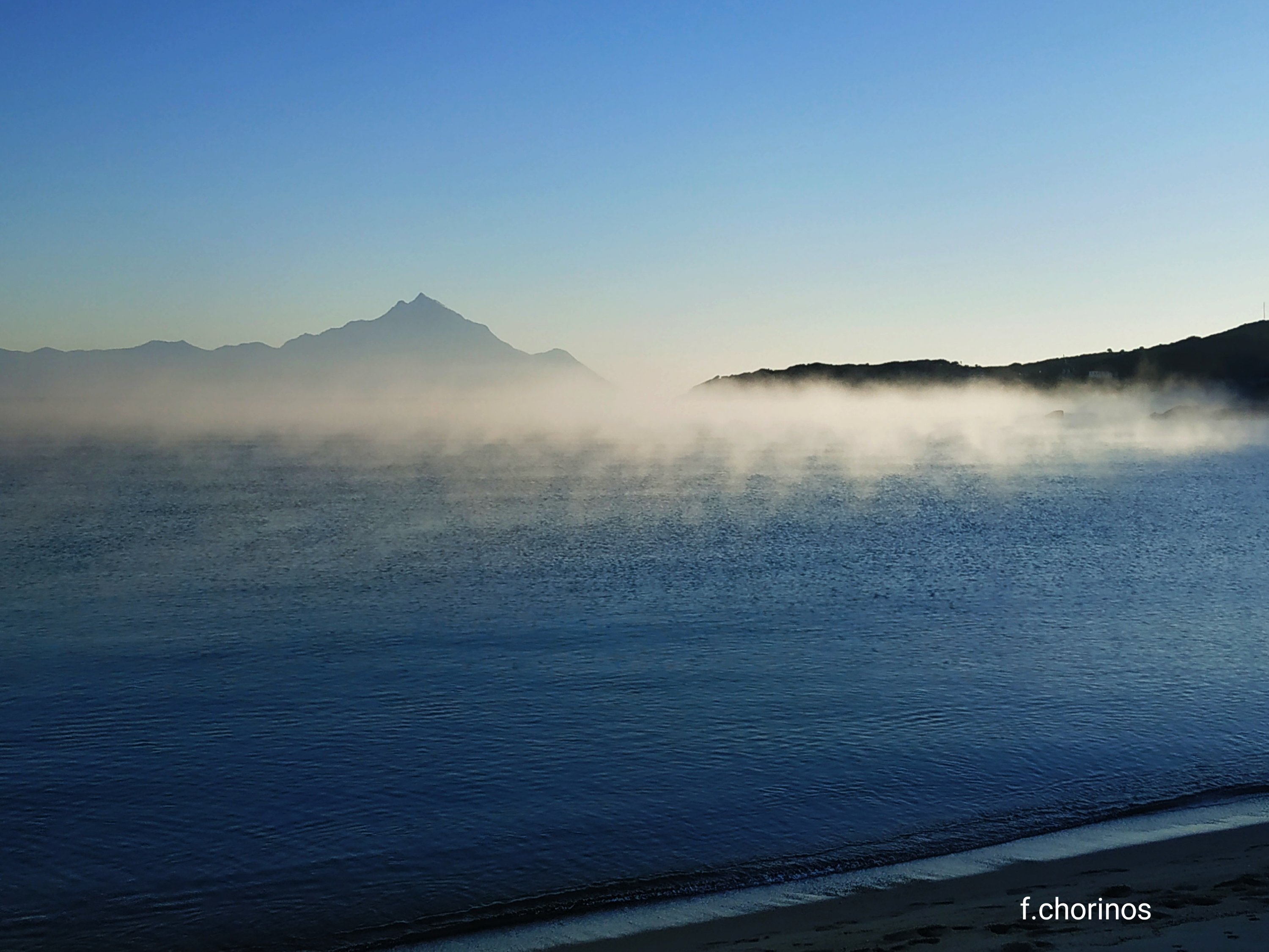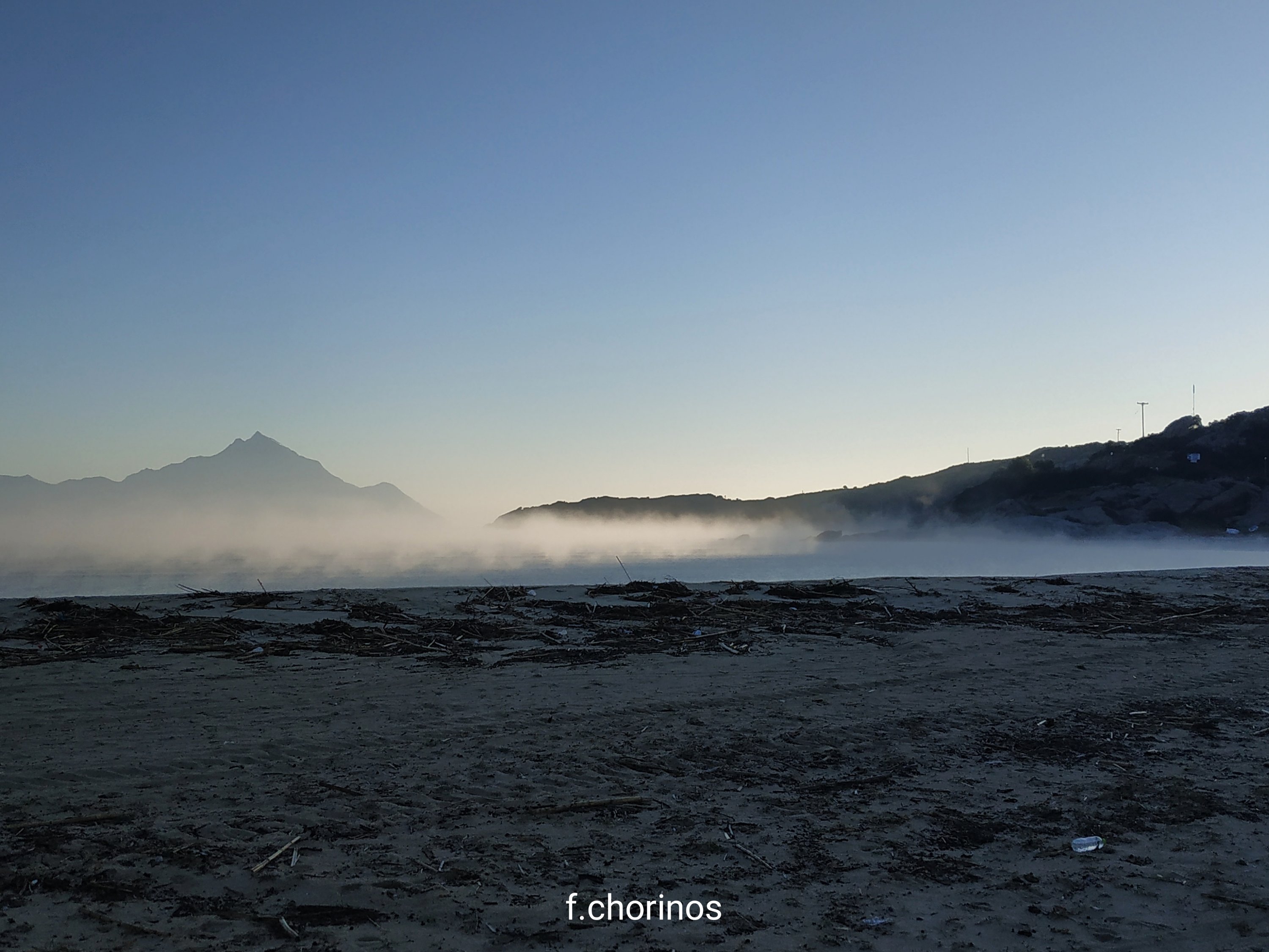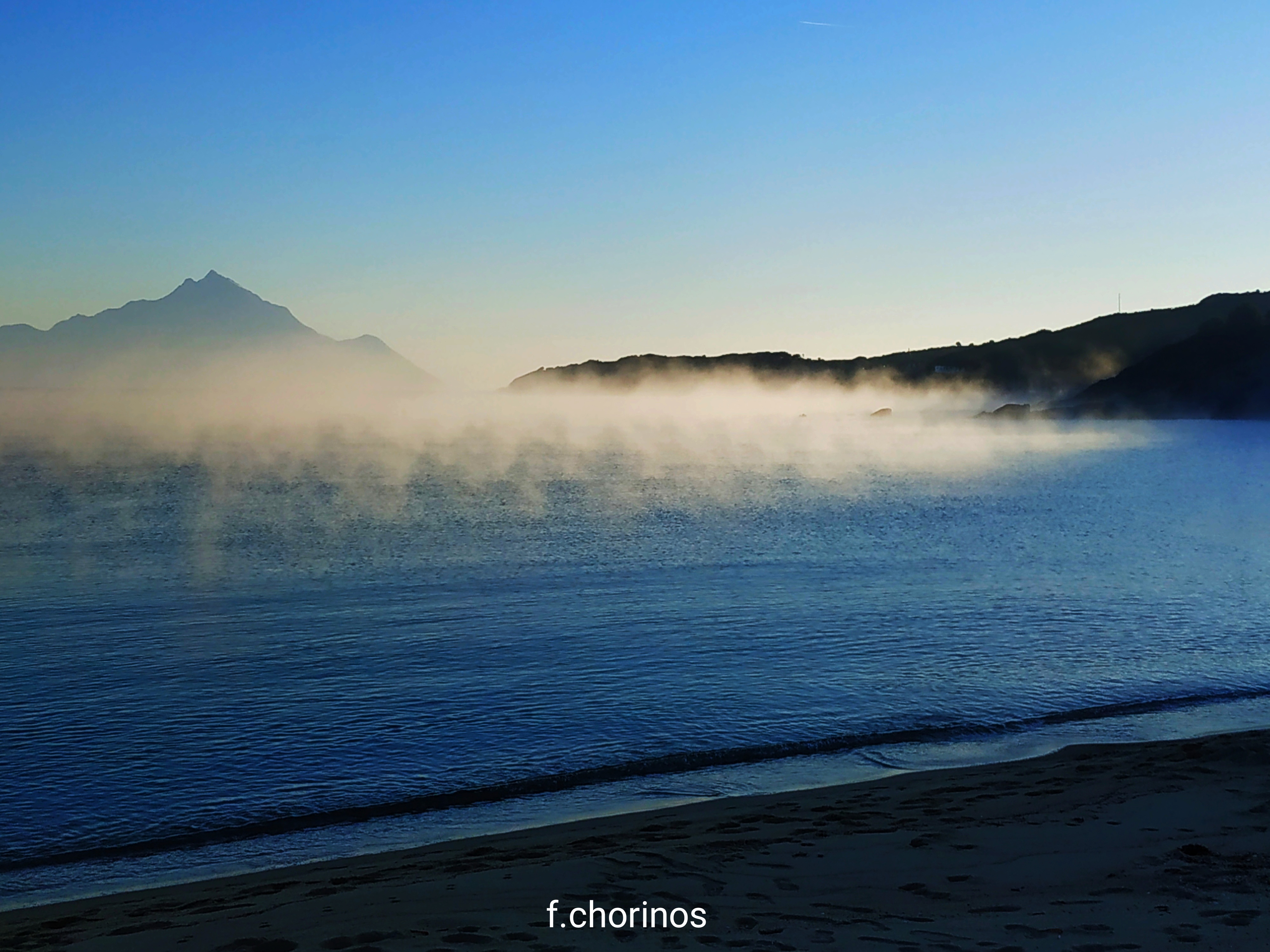 Πολλές φορές, όταν ο άνεμος γυρίζει σε νοτιά ασθενή, σχηματίζονται πυκνές ομίχλες πάνω από τις θάλασσες, οι οποίες κινούνται προς την στεριά. Αιτία, τα κρύα νερά τα οποία συναντάει ο θερμός αέρας και σχηματίζει τις επίμονες αυτές ομίχλες! Παρακάτω, το φαινόμενο όπως φαινόταν από την Σάρτη σημερα.