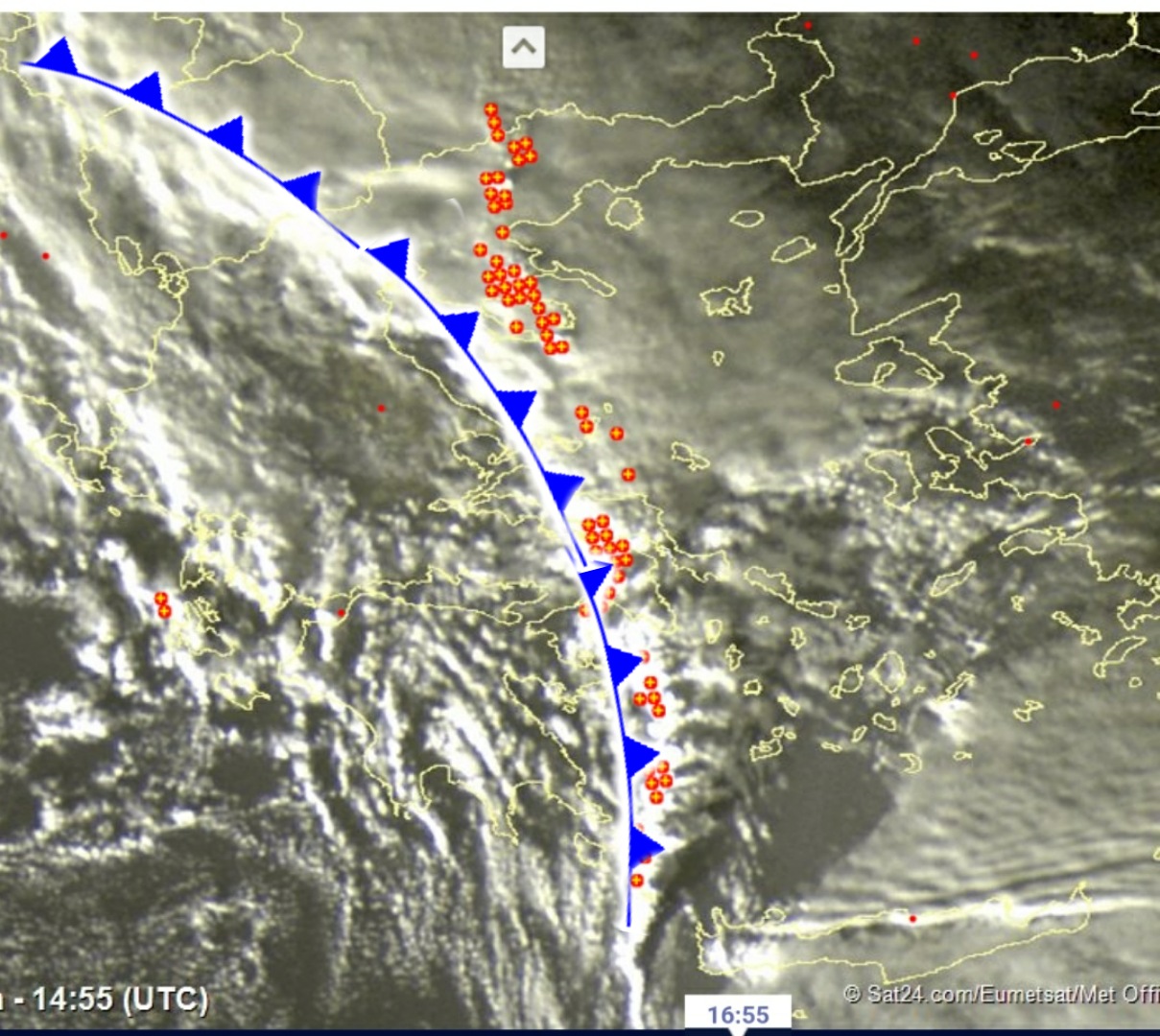 Εξαιρετικά όμορφα δομημένο στην δορυφορική αποτύπωση του το ψυχρό μέτωπο που κινείται πολύ αργά ανατολικά πάνω από την χώρα μας. Πλούσιο μέτωπο το οποίο έδωσε σε όλη σχεδόν την ηπειρωτική χώρα βροχές που αντιστοιχούν στον μέσο όρο του μήνα. Απίθανες καταγραφές στην ανατολική Θεσσαλονίκη όπου ξεπεράσαμε τα 100 χιλιοστά σε μία μόλις ημέρα ( και μάλιστα Γενάρη). Ένα άλλο εξαιρετικά σπάνιο χαρακτηριστικο του είναι ότι οι καταιγίδες, κατάφεραν τελικά να σχηματιστούν όχι μόνο στα νότια και τις θάλασσες όπως θα ήταν το λογικό τέτοια εποχή, αλλά και πάνω από καθαρα ηπειρωτικές περιοχές, κάτι εξαιρετικά ακραίο, σπάνιο και όλα τα συναφή. Το μέτωπο μπαίνει τώρα Αιγαίο, έτσι τις επόμενες ώρες θα έχουμε καταιγίδες σε όλο το Αιγαίο αλλά και την ανατολική Μακεδονία και Θράκη. Βελτιώνεται ο καιρός στην Θεσσαλονίκη, με τις βροχές να σταματούν οριστικά. Μάλιστα την νύχτα πυκνές ομίχλες θα κάνουν την εμφάνιση τους. Καλός ο καιρός την Τρίτη και στην Αττική με την ηλιοφάνεια να κυριαρχεί.