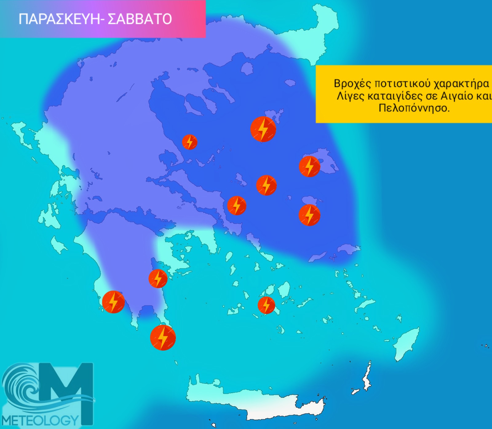 Στην ΑΤΤΙΚΗ παροδικά νεφελώδης καιρός με τοπικές βροχές το Σάββατο και το πρωί της Κυριακής. Η θερμοκρασία και εδώ σε πτώση, μέγιστη στους 17 βαθμούς με βόρειους ανέμους.