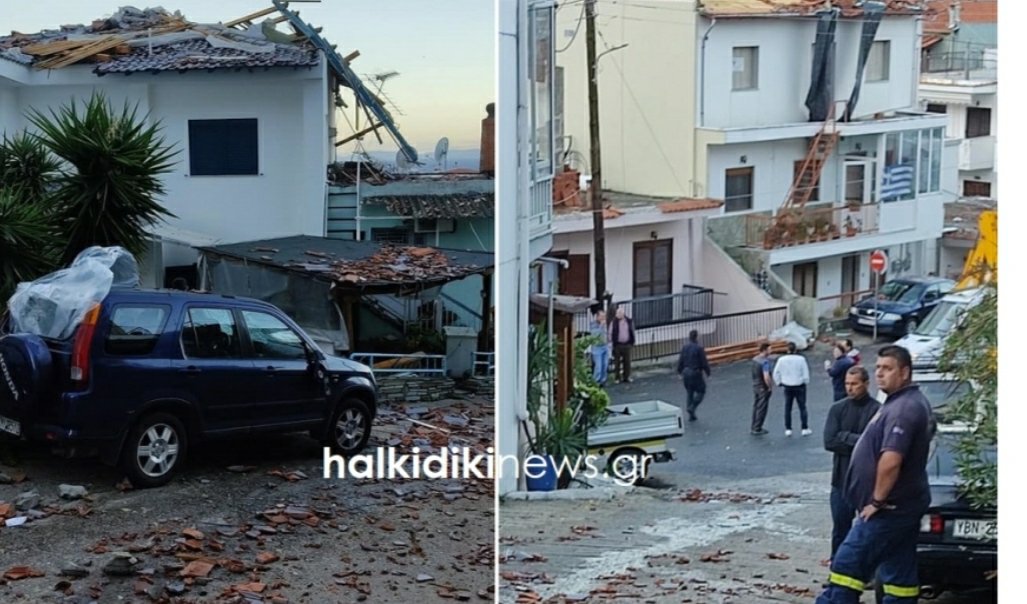 Ανεμοστρόβιλος χτύπησε τις πρωινές ώρες της Τρίτης,τον Νέο Μαρμαρά Χαλκιδικής. Οι ισχυροί άνεμοι, προκάλεσαν υλικές ζημιές, ξυλωνοντας στέγες, εκσφενδονίζοντας ακόμη και κεραμίδια σε σταθμευμένα οχήματα ! Πηγή εικόνων: Halkidiki news