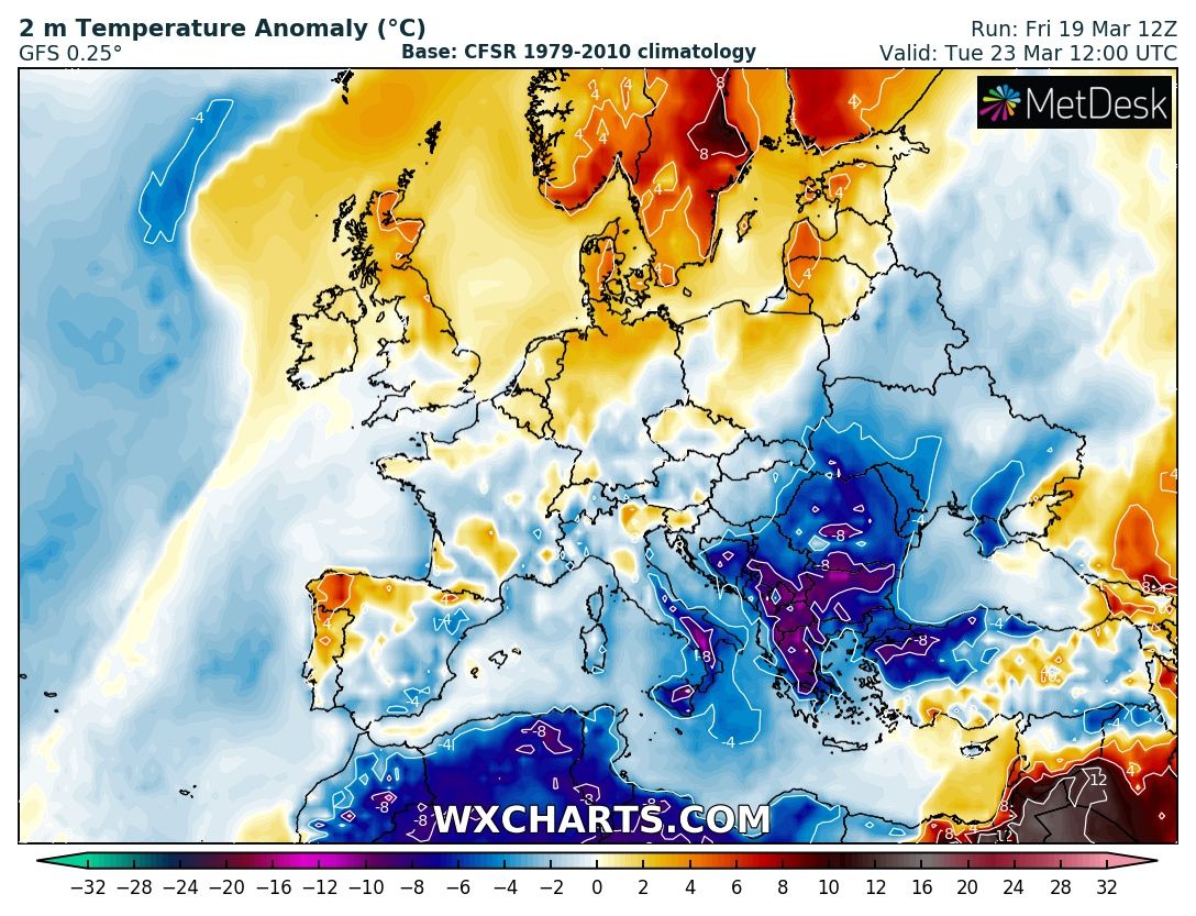 Μπορει το μεγαλυτερο μερος της Ευρωπης, σχεδον ολοκληρη εκτός απο το Ηνωμενο Βασιλειο και την Ιρλανδια, να διανυει μια κρυα περιοδο αυτες τις μερες καθως και τις επομενες, αλλά η Μεση Ανατολη περναει ενα παρα πολυ ζεστο διαστημα.