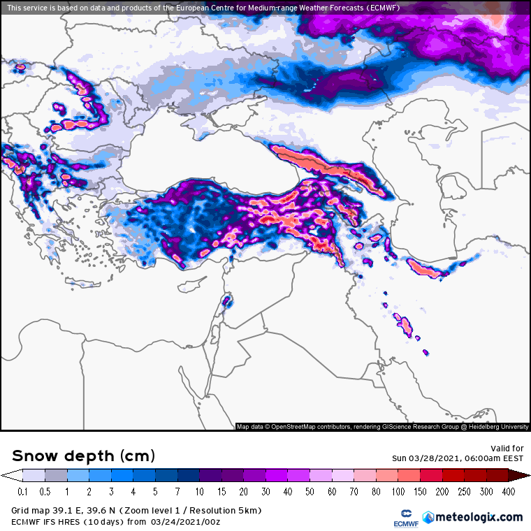 Υψη χιονοπτωσης τις επομενες μερες απο το Ευρωπαικο μοντελο: