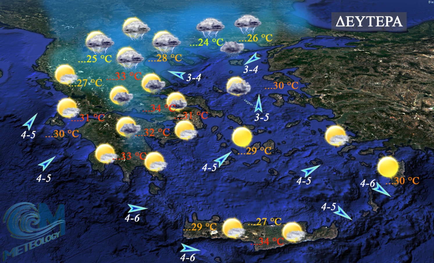 Ετσι θα σημειωθει σε σχεση με σημερα μικρη ανοδος της θερμοκρασιας για τις περισσοτερες περιοχες εκτός βορειας Ελλαδας και η θερμοκρασια σε πολλες περιπτωσεις θα ξεπερασει και τους 30 βαθμους Κελσιου.