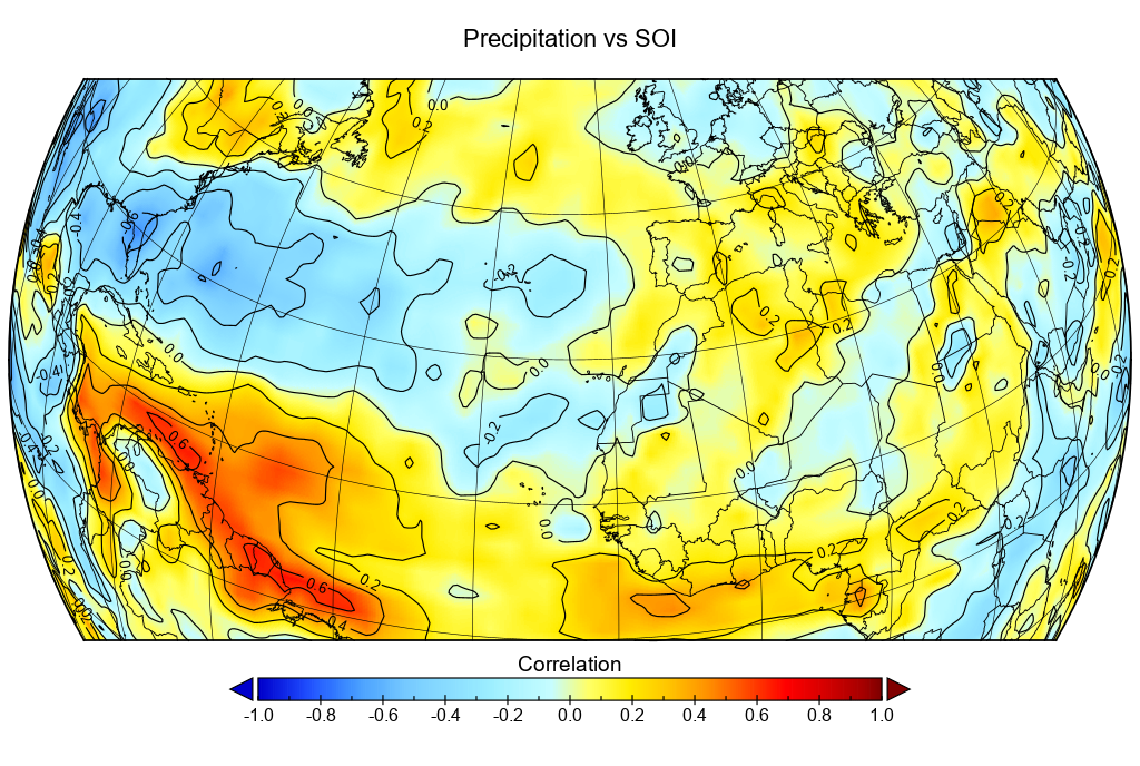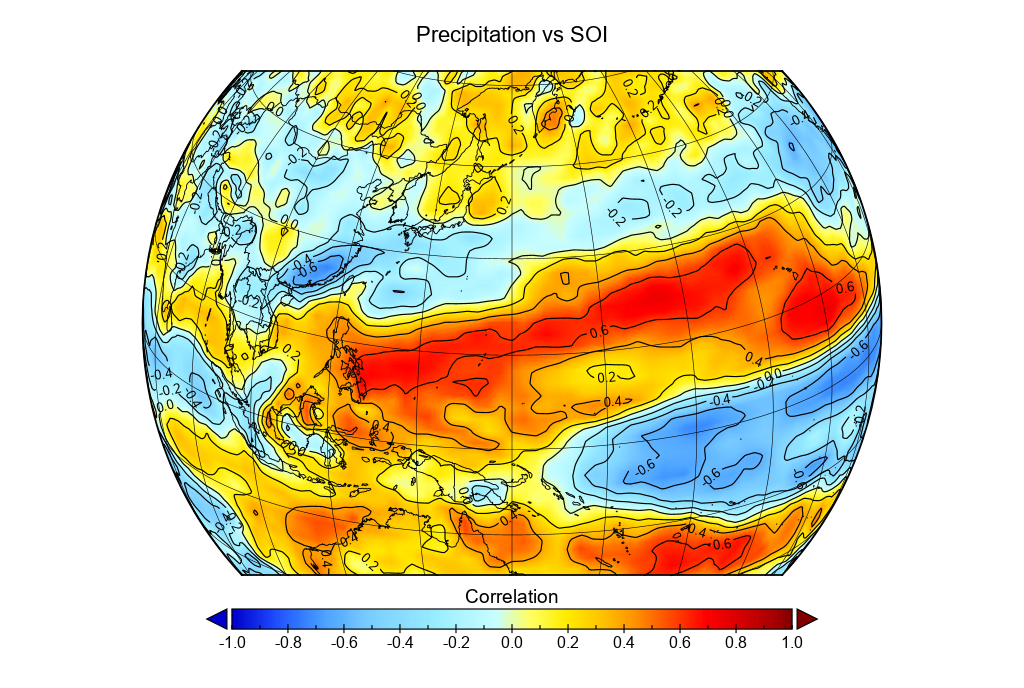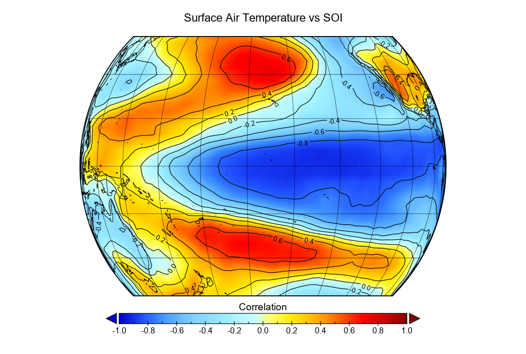 Το ENSO μπορει να μετρηθει με τον δεικτη SOI και αρκετα θετικος δεικτης SOI δειχνει οτι βρισκομαστε σε περιοδο Λα Νινια ενω αρκετα αρνητικος δεικτης SOI οτι βρισκομαστε σε περιοδο Ελ Νινιο.