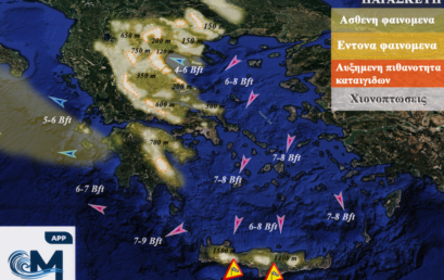 Ενίσχυση των βοριάδων σε ξηρά και θάλασσα, μέσα στην Τρίτη. Οι άνεμοι σε Θράκη, όλο το Αιγαίο και τα ανατολικά ηπειρωτικά, θα φτάσουν για κάποιες ώρες και τα 8 μποφόρ. Δυνατός βοριάς ( και παροδικές […]
