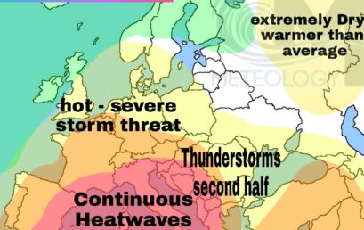 Ένας ιδιαίτερα θερμός μήνας ξεκινάει, με κύριο χαρακτηριστικό τις πολύ υψηλές θερμοκρασίες σχεδόν σε όλη την Ευρώπη, θερμοκρασίες πάνω από τον μέσο όρο στις περισσότερες περιοχές. εξαίρεση μόνο η ΒΔ Ευρώπη όπου εδώ οι βροχές […]