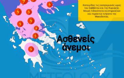 Μεσημεριανού και απογευματινου τύπου μπόρες και τοπικές καταιγίδες το Σαββατο στις περιοχές που τονίζονται με χρωματισμό. Τα φαινόμενα ιδιαίτερα στα βόρεια, ενδεχομένως να είναι τοπικά έντονα. Η κύρια απειλή είναι οι ισχυροί άνεμοι που θα […]