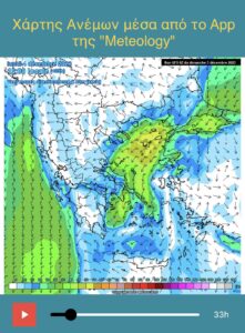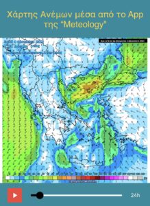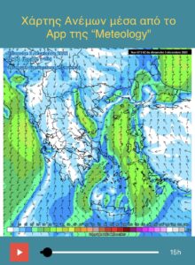 Δείτε τους παρακάτω χάρτες Ανέμων μέσα από το App της “Meteology”