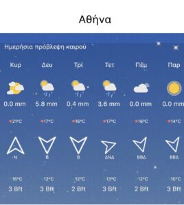 Δείτε παρακάτω ενδεικτικά 3 πόλεις της Ελλάδας με τις θερμοκρασίες και τα φαινόμενα, μέσα από τα Δεδομένα του App.