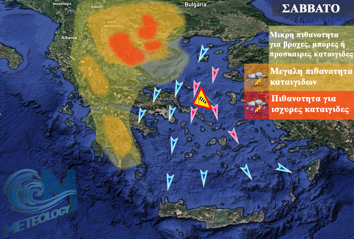 Η διαταραχή δεν θα έχει καμία επίδραση στις υπόλοιπες περιοχές ( Θράκη Αιγαίο ανατολικά ηπειρωτικά) καθώς το ξηρό μελτέμι θα αδρανοποιεί την ικανότητα σχηματισμού νεφών αξιόλογης κατακόρυφης ανάπτυξης. Το ίδιο ισχύει και για το Ιόνιο και τα δυτικά, όπου εδώ η ροή ανέμων στην ανώτερη ατμόσφαιρα ( από δυτικά προς ανατολικά) θα διώχνει τις καταιγίδες που θα σχηματιστούν στην Πίνδο, στα ανατολικά.