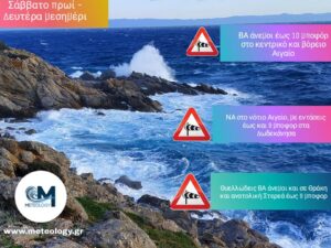 Δελτίο Θυελλωδών Ανέμων σε ισχύ από το Σάββατο προμεσηβρινές ώρες, έως μεσημεριανές της Δευτέρας. Οι μέγιστες εντάσεις θα παρατηρηθούν σε κεντρικό και βόρειο Αιγαίο, στην Θράκη , καθώς και στα Δωδεκάνησα. Δυνατοί άνεμοι και στην Αττική την Κυριακή και την Δευτέρα, ΒΑ διευθύνσεων.