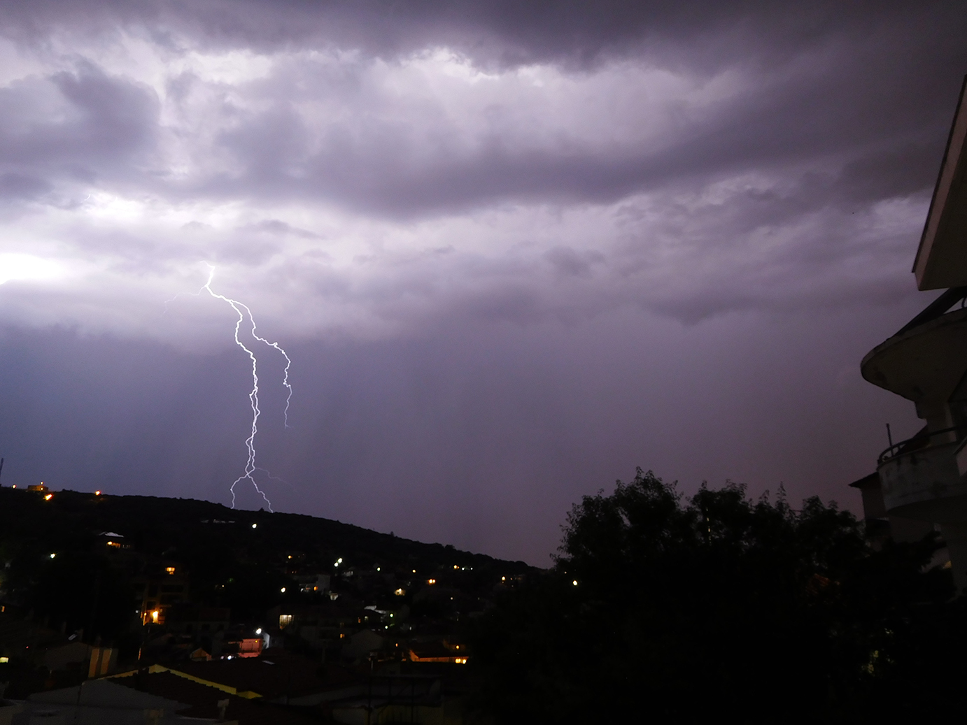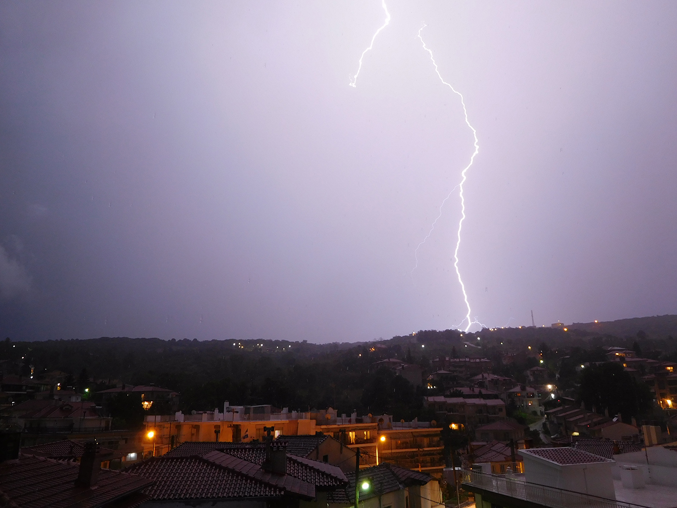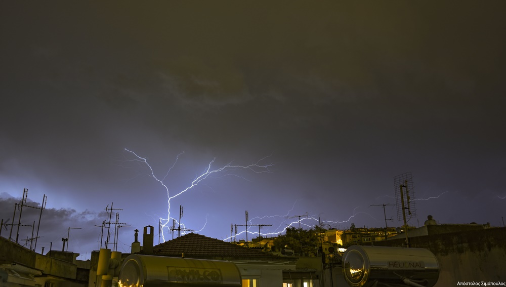 Ετσι οι βραδινες καταιγιδες που εκδηλωθηκαν ηταν εντυπωσιακες αφου συνοδευτηκαν απο αρκετα ηλεκτρικα.