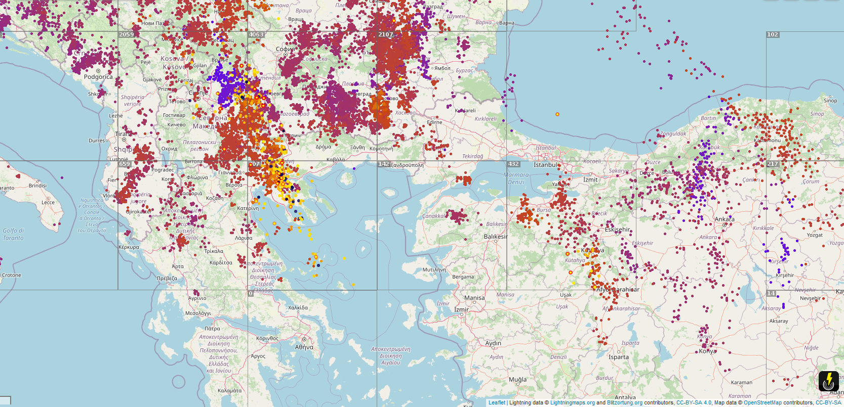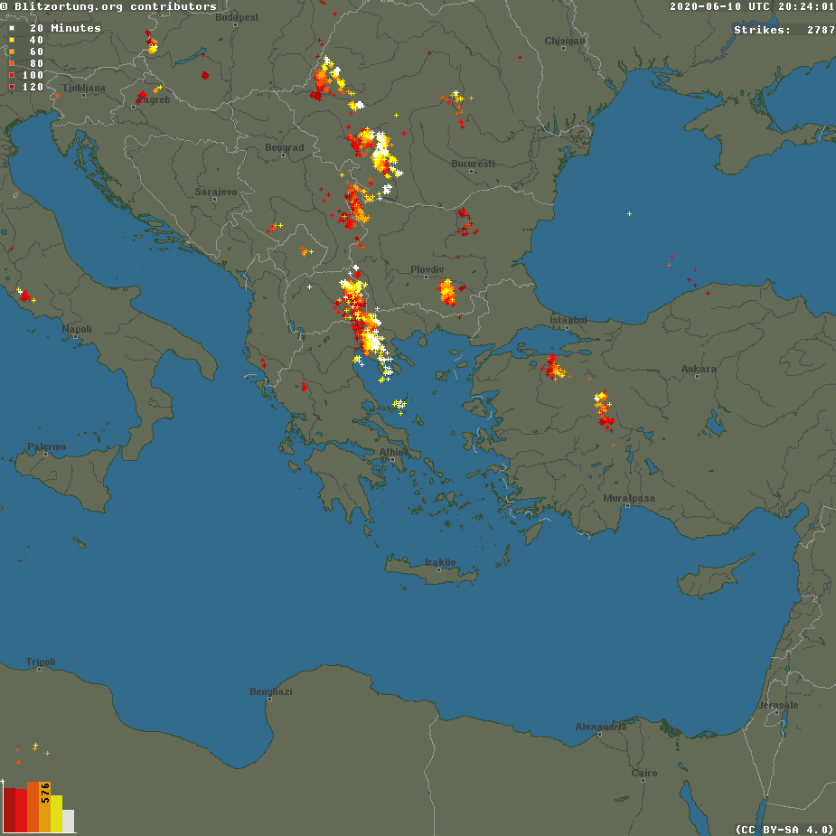 Εικονα ηλεκτρικων εκκενωσεων απο δεδομενα του δικτυου του blitzortung.