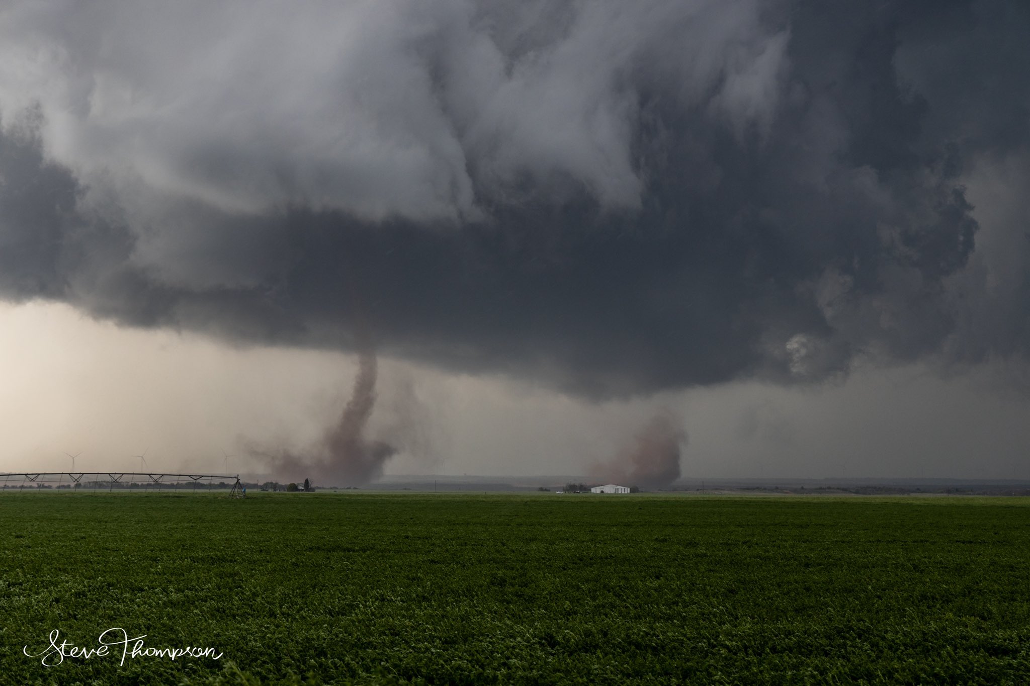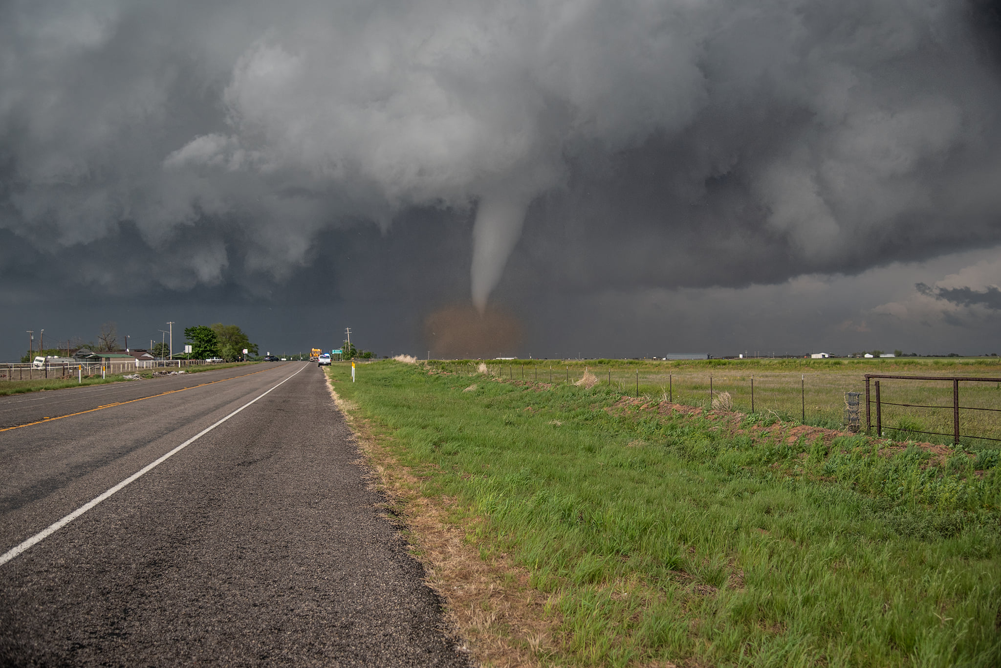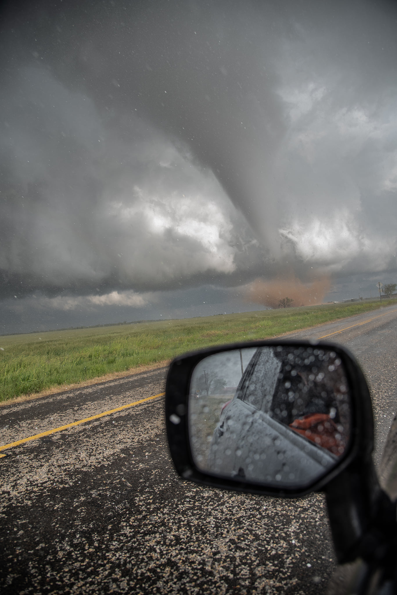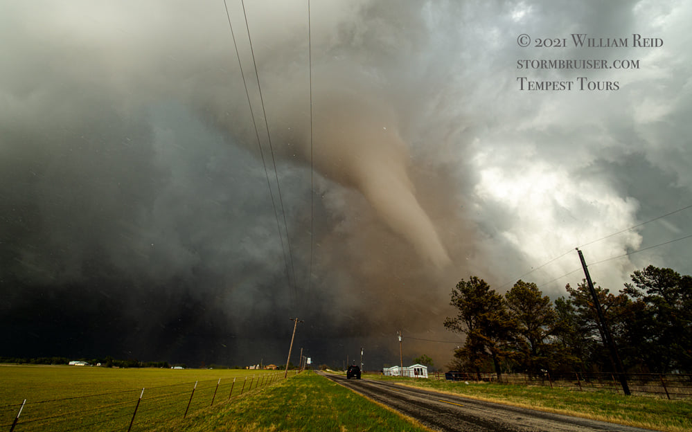 Η υγρασια υπηρχε αφθονη αφου οι ανεμοι στο Τεξας και γενικα σε ολες τις νοτιες ΗΠΑ ηταν νοτιων διευθυνσεων(νοτιαδες) και υπηρξε μια ισχυρη dryline που αποτελεσε και το αιτιο ανυψωσης. Η dryline ειναι μια διαχωριστικη γραμμη μεταξυ 2 αεριων μαζων με διαφορετικες ιδιοτητες, μιας ξηρης και πολυ θερμης αεριας μαζας που κινειται προς μια υγρη και λιγοτερο θερμη αερια μαζα που επεται. Ετσι, καθως ο ξηρος αερας ειναι περισσοτερο πυκνος απο τον υγρο αερα που βρισκεται μπροστα του, εισχωρει προς τα κατω και ο υγρος αερας ανυψωνεται δημιουργωντας νεφοποιησεις και εξαναγκασμενη κινηση προς τα πανω, που λογω ασταθειας φτανει πολυ ψηλα στην ατμοσφαιρα δημιουργωντας ισχυρες καταιγιδες που παρουσια ισχυρης διατμησης του αερα καθ’υψος ευνοειται η αναπτυξη υπερκυτταρων(supercell) καταιγιδων και ανεμοστροβιλων.