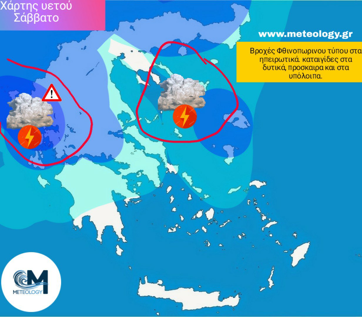 Σύμφωνα με αυτό: Τις πρωινές ώρες, ιδιαίτερη προσοχή θα πρέπει να δείξουν οι κάτοικοι της δυτικής Ελλάδας και των νησιών του Ιονίου, καθώς ο νοτιάς θα ξεπεράσει και τα 8-9 μποφόρ για κάποιες ώρες. Φροντιστε για την ασφάλιση των αντικειμένων, των οχημάτων και σκαφών σας. Κατά την διάρκεια της ημέρας, ο νοτιάς στο Ιόνιο θα εξασθενήσει, ενώ παράλληλα θα βρέξει κατά τόπους. Αντίθετα θα ενισχυθεί στο Αιγαίο, φτάνοντας και τα 7 μποφόρ κατά περιόδους, με δυνατές ριπές. Από βροχές, αυτές θα εκδηλωθούν στις περισσότερες ηπειρωτικές περιοχές, με έμφαση τα δυτικά και την ανατολική Μακεδονία. Δεν αναμένεται να επηρεαστεί η νότια χώρα. Πολύ λίγο θα επηρεαστεί επίσης η κεντρική Μακεδονία, καθώς εδώ ο δυνατός ανατολικός θα κρατήσει τις βροχές μακριά.