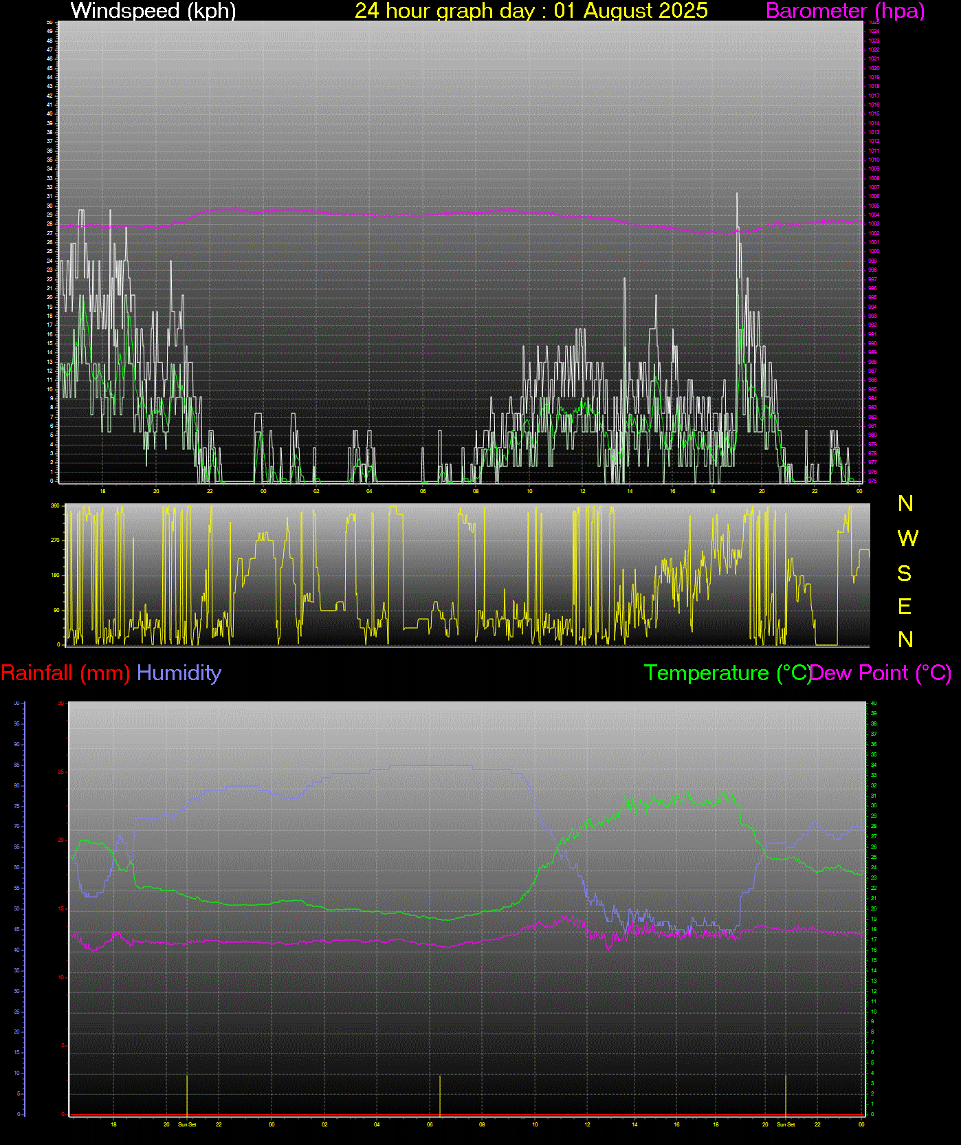 | Μέγιστη ταχύτητα ριπών ανέμου | 11.1 km/h στις 338°(ΒΒΔ) τον 01 στις 20:17 |