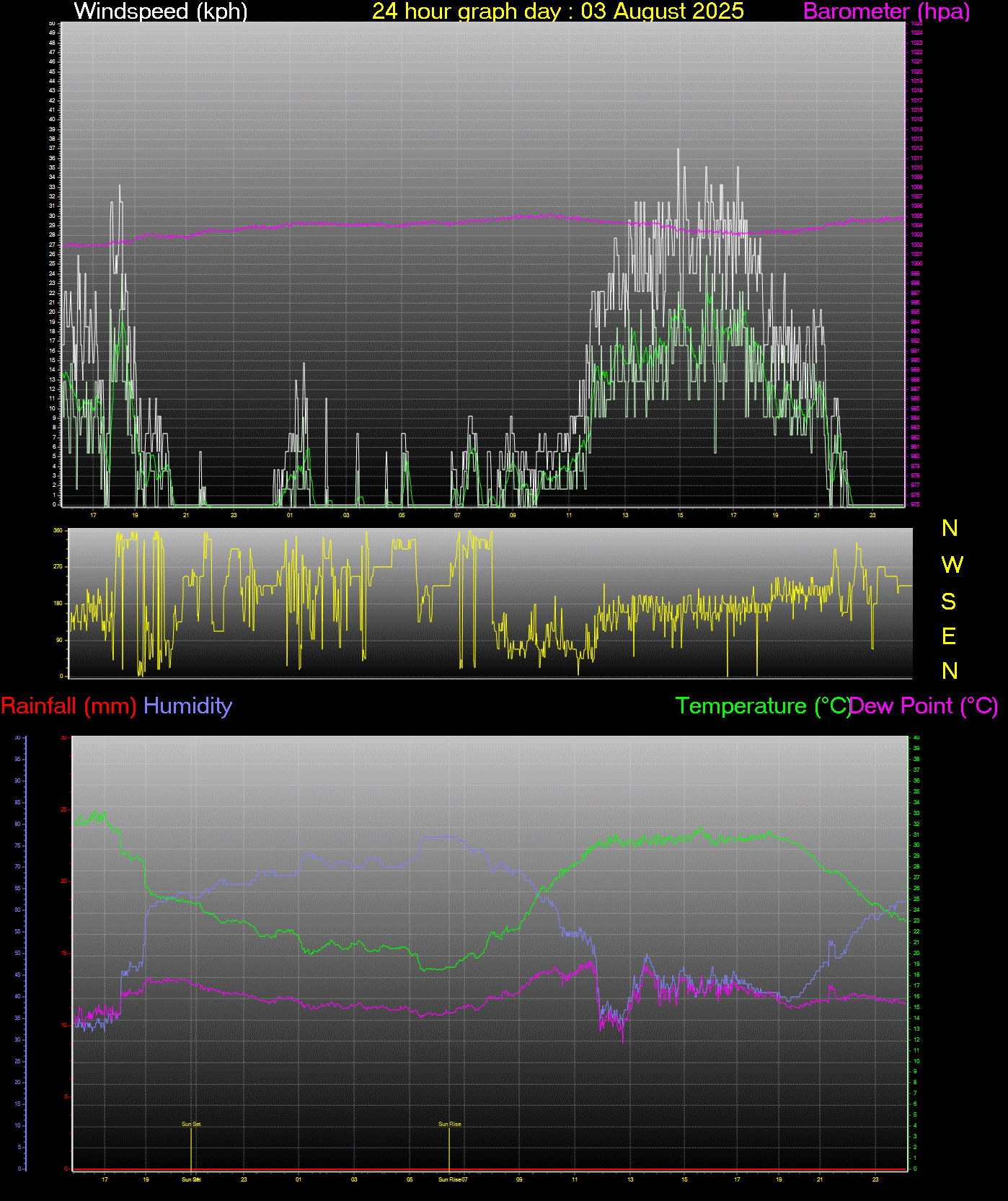 | Μέγιστη ταχύτητα ριπών ανέμου | 13.0 km/h στις 338°(ΒΒΔ) τον 03 στις 01:02 |