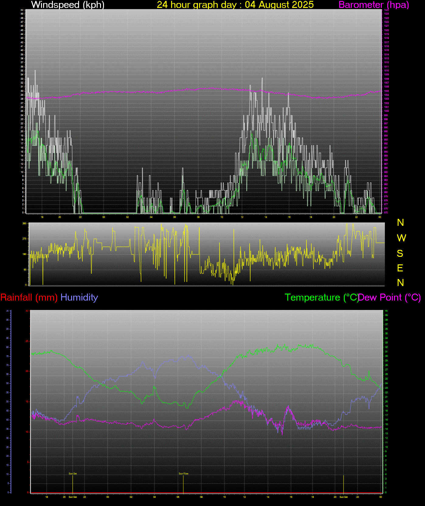 | Ελάχιστη πίεση | 1012.5 hPa τον 02 στις 14:41 |