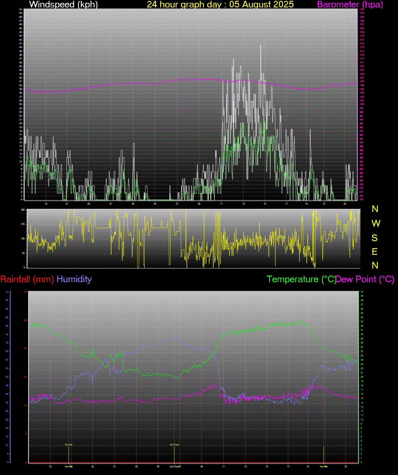 | Μέγιστη ταχύτητα ριπών ανέμου | 92.5 km/h στις 338°(ΒΒΔ) τον 05 στις 18:41 |