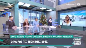 Το Σαββατοκύριακο στις 11 & 12 Δεκεμβρίου, η Meteology επιστέφτηκε το Χιονοδρομικό Κέντρο Πισοδερίου Βίγλας για να απαθανατίσει τις χιονοπτώσεις αλλά και να δώσει το καθιερωμένο Ρεπορταζ στην εκπομπή του κυρίου Μάνεση στον Alpha “Σαββατοκύριακο με τον Μάνεση”, με διπλή εμφάνιση το Σαββάτο, καθώς επίσης και την Κυριακή
