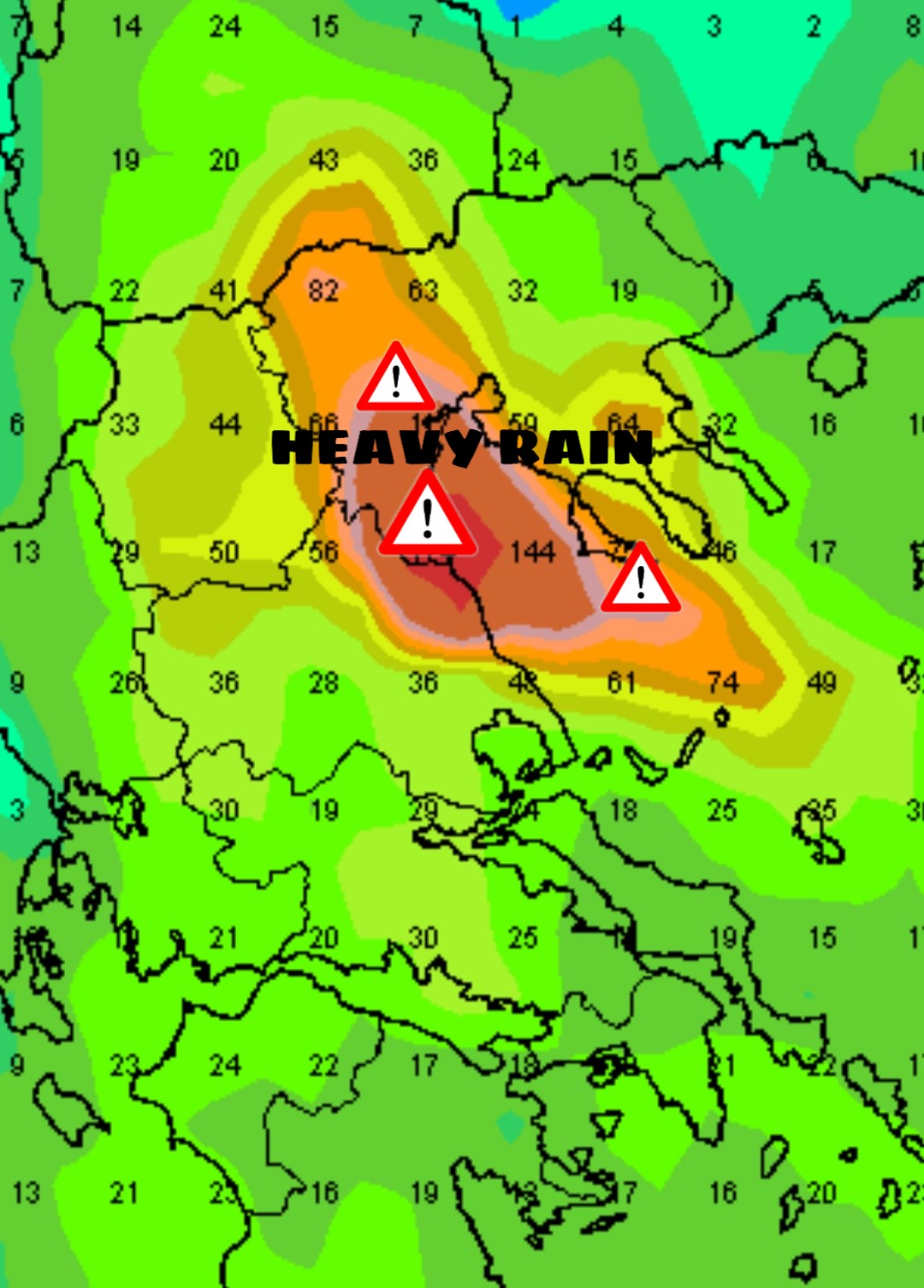 Μεγάλα ύψη βροχής αναμένονται τις επόμενες 12-16 ωρες σε όλες τις περιοχές γύρω από τον Θερμαϊκό. Ακτές Πηλίου, Πιερία, Ημαθία, Πέλλα, Χαλκιδική καθώς και τα δυτικότερα τμήματα της Θεσσαλονίκης, θα δέχονται δυνατές βροχοπτώσεις. Οι περιοχές που καλύπτονται με τα έντονα χρώματα στον χάρτη ( πηγή: meteociel. Fr) είναι και αυτές που θα επηρεαστούν περισσότερο. Δείξτε προσοχή κατά τις μετακινήσεις σας, καθώς οι συνθήκες οδήγησης θα γίνουν πολύ δύσκολες. Αποφύγετε τις περιοχές με προηγούμενο ιστορικό συσσωρευσης υδάτων. Υποχώρηση των έντονων βροχών από το απόγευμα της Τετάρτης.