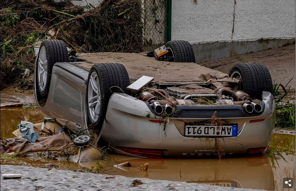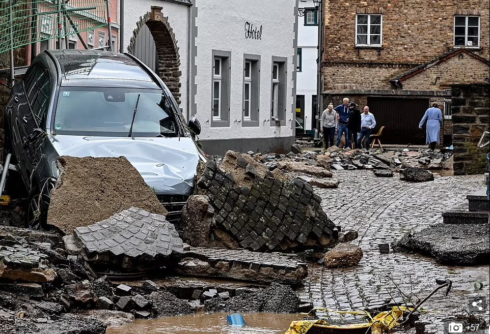 Ενω στην δυτικη Γερμανια τουλαχιστον 200000 σπιτια εμειναν χωρις ηλεκτρικο ρευμα λογω των τεραστιων προβληματων που εφεραν τα μεγαλα υψη νερου που επεσαν.
