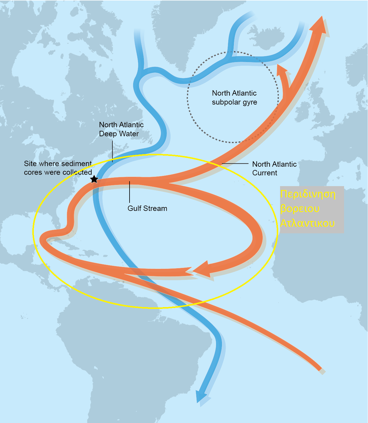 Τι ειναι το Ρευμα του Κολπου ομως? Το Ρευμα του Κολπου ειναι το ρευμα της βορειας επιστροφης της υποτροπικης περιδινησης του βορειου Ατλαντικου, μαζι με την βορειοανατολικη προεκταση του(north Atlantic current(ΝΑC) ή north Atlantic drift). Αποτελειται απο πολυ θερμα νερα, της ταξης των 10-15 °C παραπανω απο τα νερα του Ατλαντικου. Η περιδινηση συμβαινει λογω ατμοσφαιρικων ανεμων οδηγουν την πορεια του Ρευματος του Κολπου οπως και ολη την πορεια της ροης της. Οπως ειπαμε ομως εκτός της βορειας ροης αυτης της περιδινησης, το Ρευμα του Κολπου περιεχει και ενα παρακλαδι προς τα βορειοανατολικα(NAC) που φτανει αρκετα βορεια και αποτελει μερος της πολυ σημαντικης για την ρυθμιση του κλιματος ωκεανιας κυκλοφοριας AMOC(Atlantic Meridional Overturning Circulation).