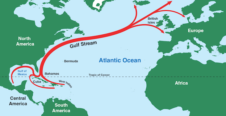 Ετσι, πριν το 2000 ηταν ευρεως διαδεδομενη η αποψη για το Ρευμα του Κολπου(Gulf Stream) οτι ειναι αυτο που ευθυνεται για την αρκετα θερμοτερη δυτικη, βορειοδυτικη και βορεια ευρωπη καθως και την κεντρικη βεβαια, σε σχεση με τον ανατολικο και νοτιο Καναδα και τις βορειες και ανατολικες ΗΠΑ στα ιδιο γεωγραφικο πλατος. Ετσι λοιπον θεωρουνταν πως το θερμο αυτο θαλασσιο ρευμα που διαρρεει τον Ατλαντικο, φερνει στην Ευρωπη ηπιοτερες θερμοκρασιες σε τετοιον μεγαλο βαθμο που φτιαχνει αυτες τις πολυ μεγαλες θερμοκρασιακες διαφορές.