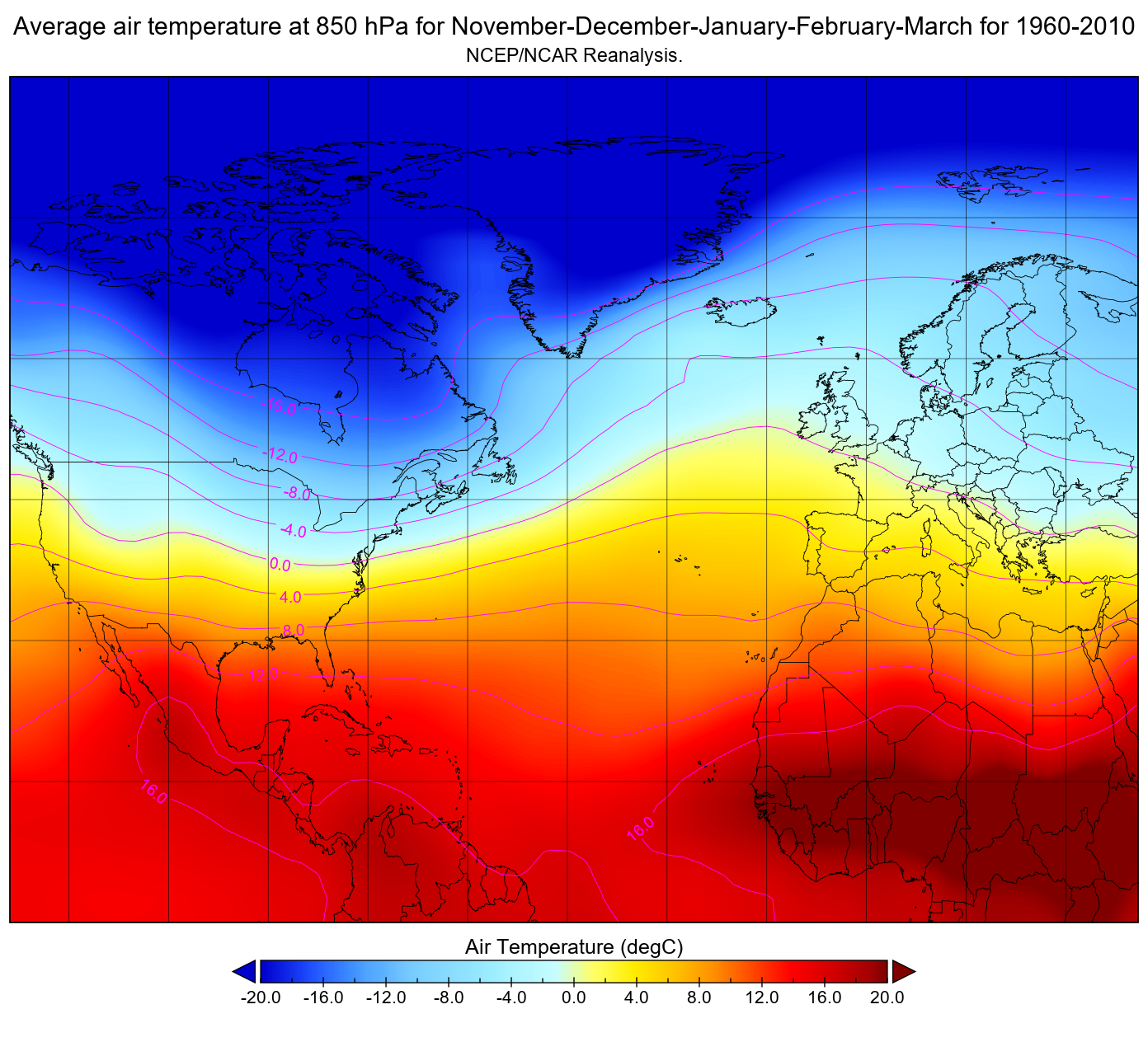 Ως γνωστον οι ψυχρες εισβολες στον χωρο της βορειας Αμερικανικης ηπειρου ειναι πολυ συχνοτερες και ισχυροτερες απο οτι πανω απο την Ευρωπαϊκη ηπειρο.