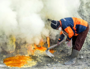 Ο λόγος για τους ντόπιους εργάτες που την επισκέπτονται καθημερινά για εξόρυξη θείου, το οποίο απομακρύνουν από τη λίμνη και στη συνέχεια μεταφέρουν στα χωριά τους. Μιλάμε για μια διαδικασία που απαιτεί ώρες παραμονής στον χώρο και μεταφορά φορτίου ύψους 200 κιλών σε απόσταση τριών χιλιομέτρων.