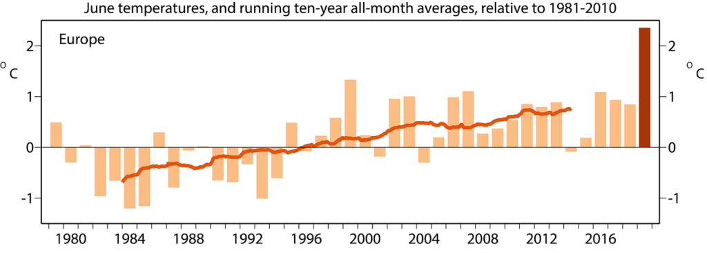 Οι θερμοκρασιες σε Γαλλια και Γερμανια μαλιστα ηταν ακομα μεγαλυτερες σε μεσους όρους και απο τον φονικο καυσωνα του 2003. Ευτυχως αυτη τη φορα ηταν πολυ πιο προετοιμασμενοι και δεν υπηρξαν σε καμια περιπτωση τα χιλιαδες θυματα του 2003.