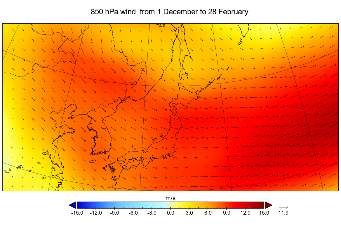 Παρακατω δινονται οι μεσες θερμοκρασιες χειμωνα στην σταθμη των 850 hPa σε Ιαπωνια και Ελλαδα. Να υπενθυμισουμε οτι μιλαμε για ιδια γεωγραφικα πλατη.