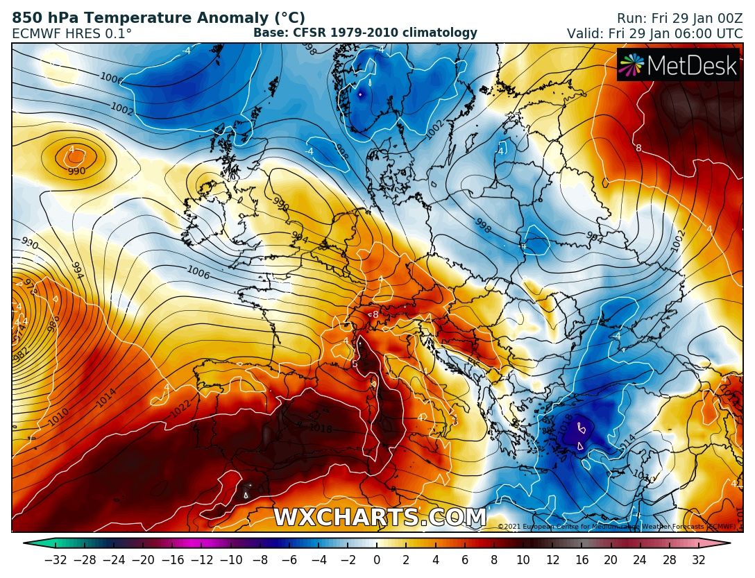 Ο Γεναρης δειχνει και στην Ισπανια το φετινο διπροσωπο του προσωπο. Ετσι, μετα την πολυ κρυα περιοδο για την Ισπανια στις αρχες του, οπου η Μαδριτη ειχε δει χιονοπτωσεις ρεκορ 35-50 ποντων, και μια δολινη στα 1874 μετρα της επαρχιας του Λεον ειχε σπασει 7 Γεναρη, το ρεκορ χαμηλοτερης θερμοκρασιας οχι μόνο για Γεναρη αλλά ολων των εποχων για την Ισπανια με -35.8 °C, εδω και λιγες μερες διανυει μια πολυ ζεστή περιοδο και στο Αλικαντε στην νοτιοανατολικη Ισπανια σημειωθηκε πριν απο λιγο θερμοκρασια +29.8 °C καταρριπτοντας την υψηλοτερη θερμοκρασια Ισπανιας ολων των εποχων για τον Γεναρη (8 Γεναρη 1982 με +29.2 °C)! Η ιδια περιοχη χθες ειχε ισοφαρισει το ρεκορ του 1982 καταγραφοντας +29.2 °C.