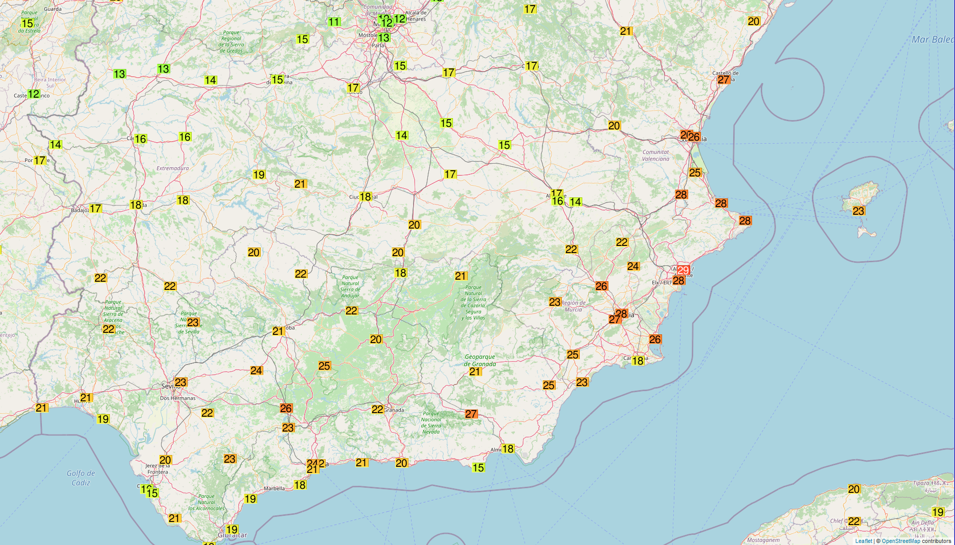 Ενω το αεροδρομιο του Αλικαντε(αλλος σταθμος) κατεγραψε και αυτο +28.3 °C καταρριπτοντας το δικο του ρεκορ υψηλοτερης θερμοκρασιας Γεναρη που ηταν +26.8 °C.