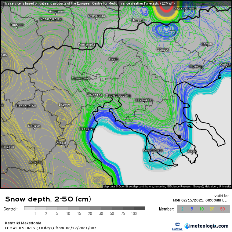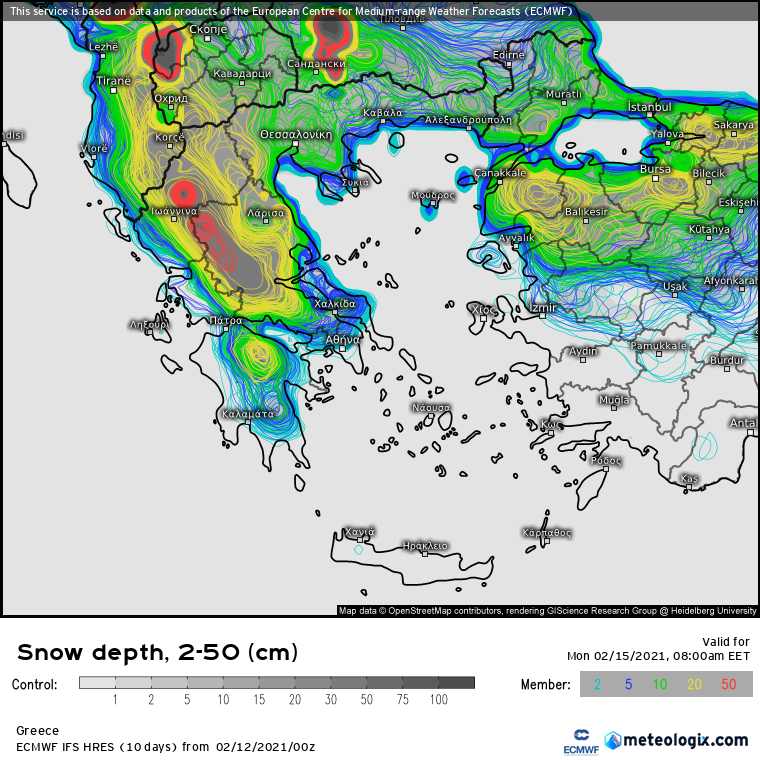 Χαρτες υψους χιονοστρωσης εως και πρωι Δευτερας απο τα ενσεμπλς του Ευρωπαικου μοντελου καιρου(ενδεικτικοι ειναι και δεν ισχυουν με κυριολεκτικη αναγνωση).