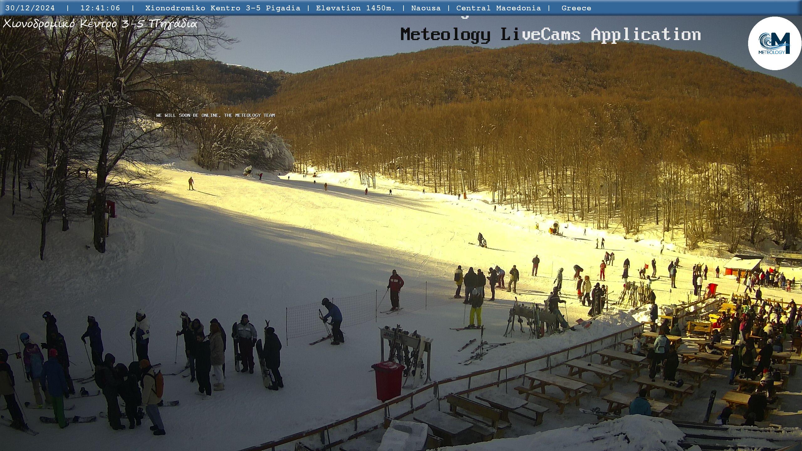 Άποψη απο το χιονοδρομικό κέντρο 3-5 Πηγάδια Νάουσας. H κάμερα είναι τοποθετημένη στο σαλέ του Χιονοδρομικού Κέντρου σε υψόμετρο 1460 μέτρων. Μπροστά φαίνεται το πλατό της πίστας του Παραδείσου και το συρόμενο το Σ2