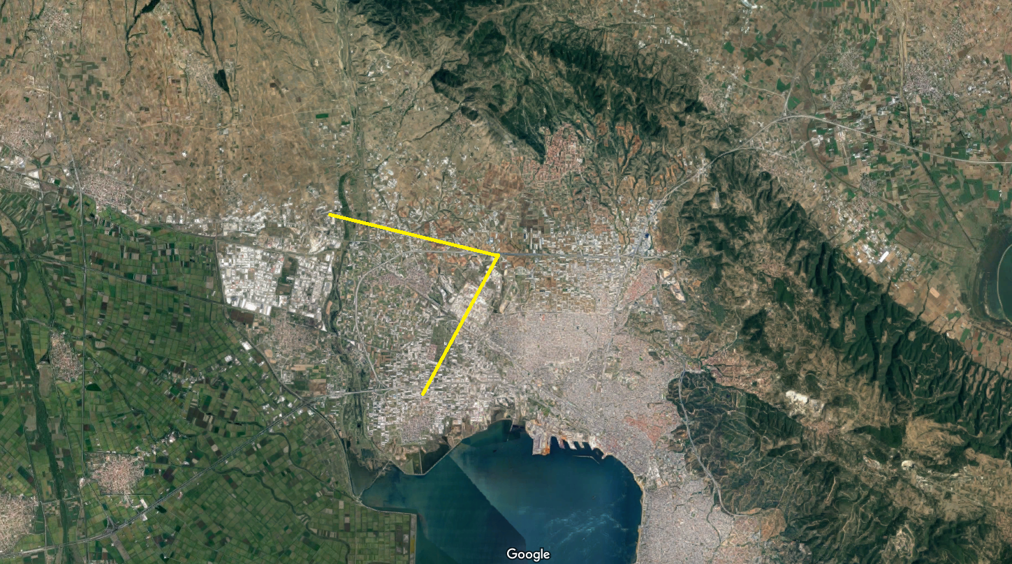 You can see the western suburbs of the city and in the background Olympus and Pieria Mountains