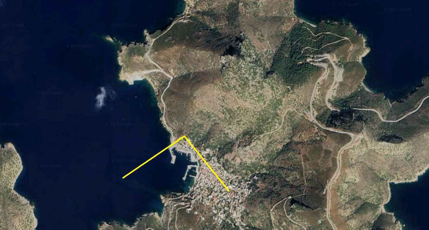 Πανοραμική θέα του λιμανιού των Φούρνων Κορσέων. H κάμερα έχει νότιο προσανατολισμό.