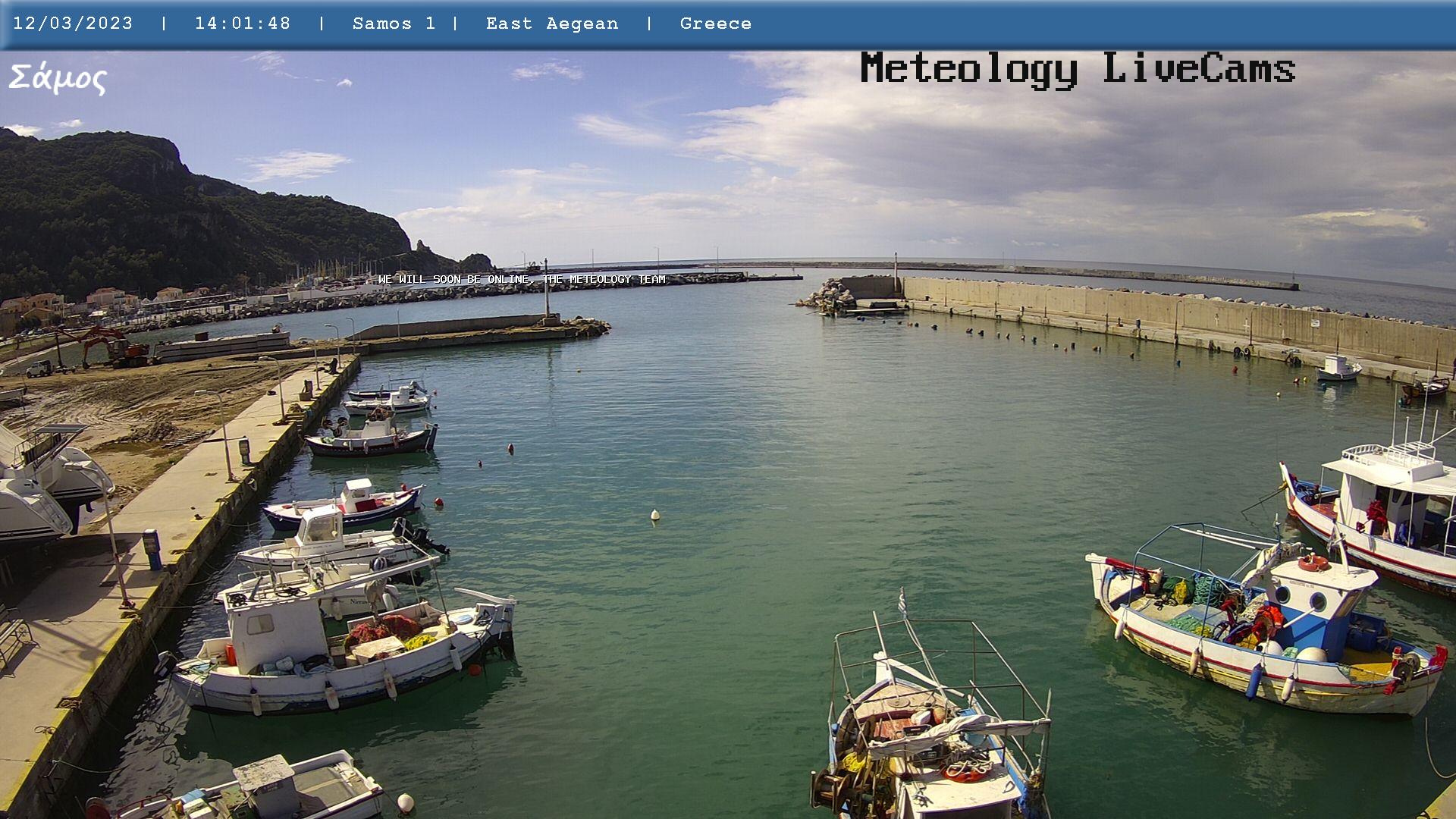 Η κάμερα είναι τοποθετημένη στην βόρεια πλευρά του νησιού, στο κεντρικό λιμάνι του Καρλοβασίου Σάμου με κατεύθυνση εικόνας δυτική, ενώ στο βάθος διακρίνεται ο ορεινός όγκος και η ράμπα σκαφών. Η κάμερα μας τοποθετήθηκε με την ευγενική συνεργασία του Προέδρου του τοπικού παραρτήματος της Ελληνικής Ομαδάς Διάσωσης, κυρίου Δημήτρη Καλατζή.