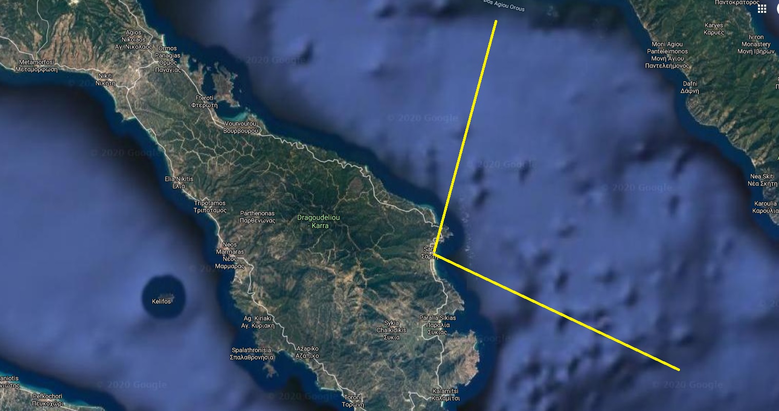 Η κάμερα είναι τοποθετημένη στην Σάρτη Χαλκιδικής με κατεύθυνση βορειοανατολική προς τον κόλπο της Σιθωνίας, ενώ στο βάθος διακρίνεται το Όρος Άθως με το Άγιο Όρος.