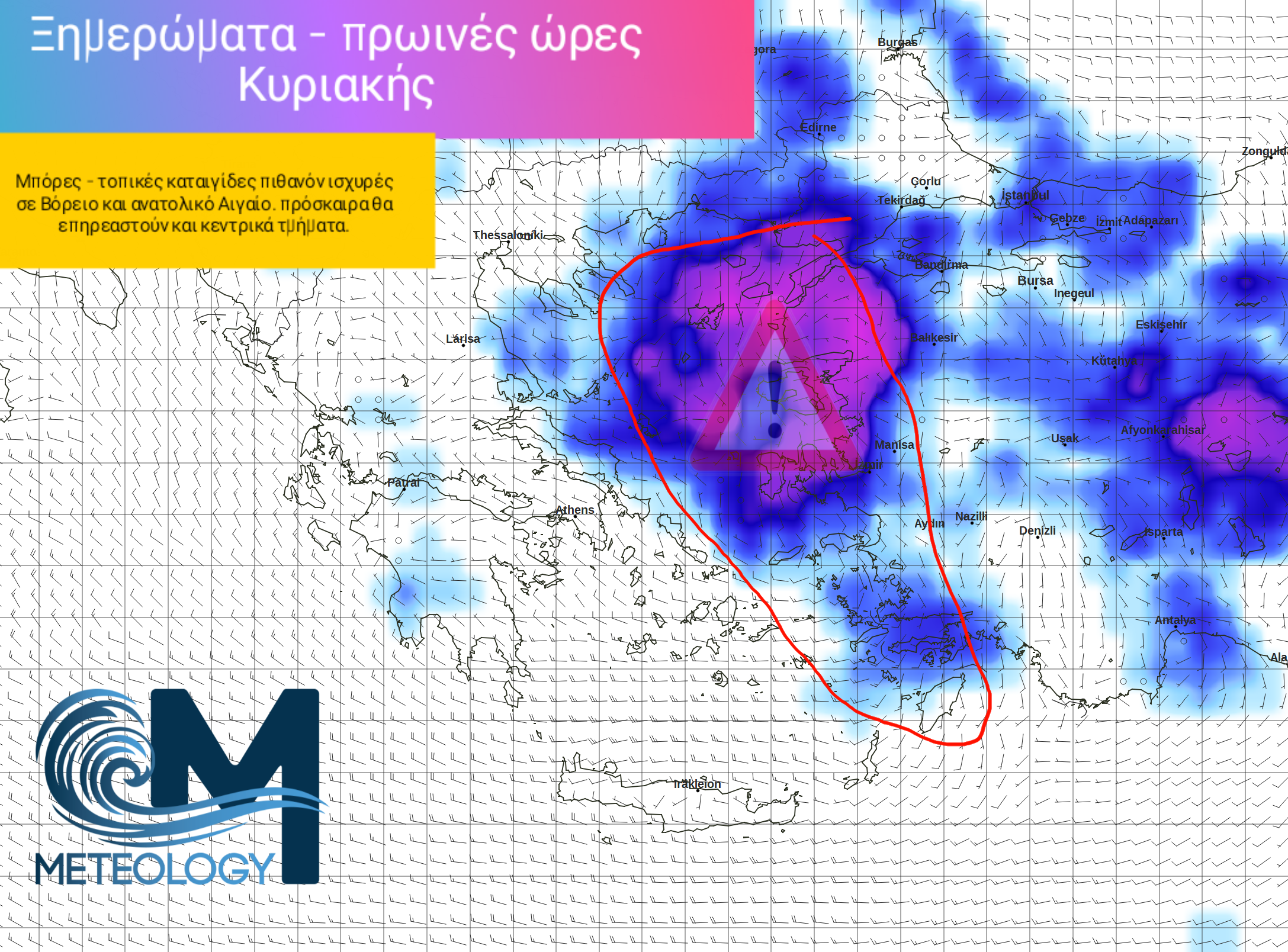 Μετά από πολύ καιρό, φαίνεται πως πολλά νησιά του βορείου και ανατολικού κυρίως Αιγαίου, θα δεχθούν αξιόλογες βροχές με την μορφή καταιγίδων. Χρονικά αυτό τοποθετείται από την νύχτα του Σαββάτου έως τις πρωινές ώρες της Κυριακής. Στον χάρτη τονίζονται και τα τμήματα τα οποία θα δεχθούν και τα εντονότερα φαινόμενα.