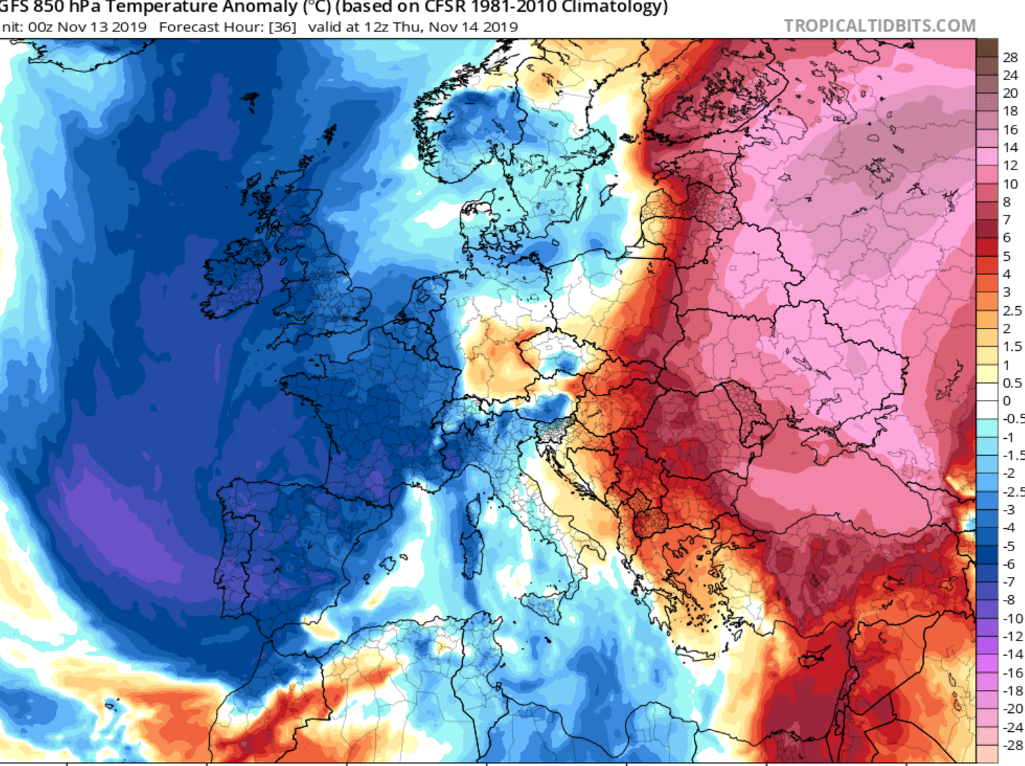 Η αιτία που συμβαίνει αυτό, είναι ένας πολύ καλά οργανωμένος αυλώνας ο οποίος συνοδεύεται από μεγάλη βαρομετρική δραστηριότητα, στην δυτική Ευρώπη. Δραστηριότητα, η οποία τμηματικά, επηρέαζε και εμάς μέχρι σήμερα.