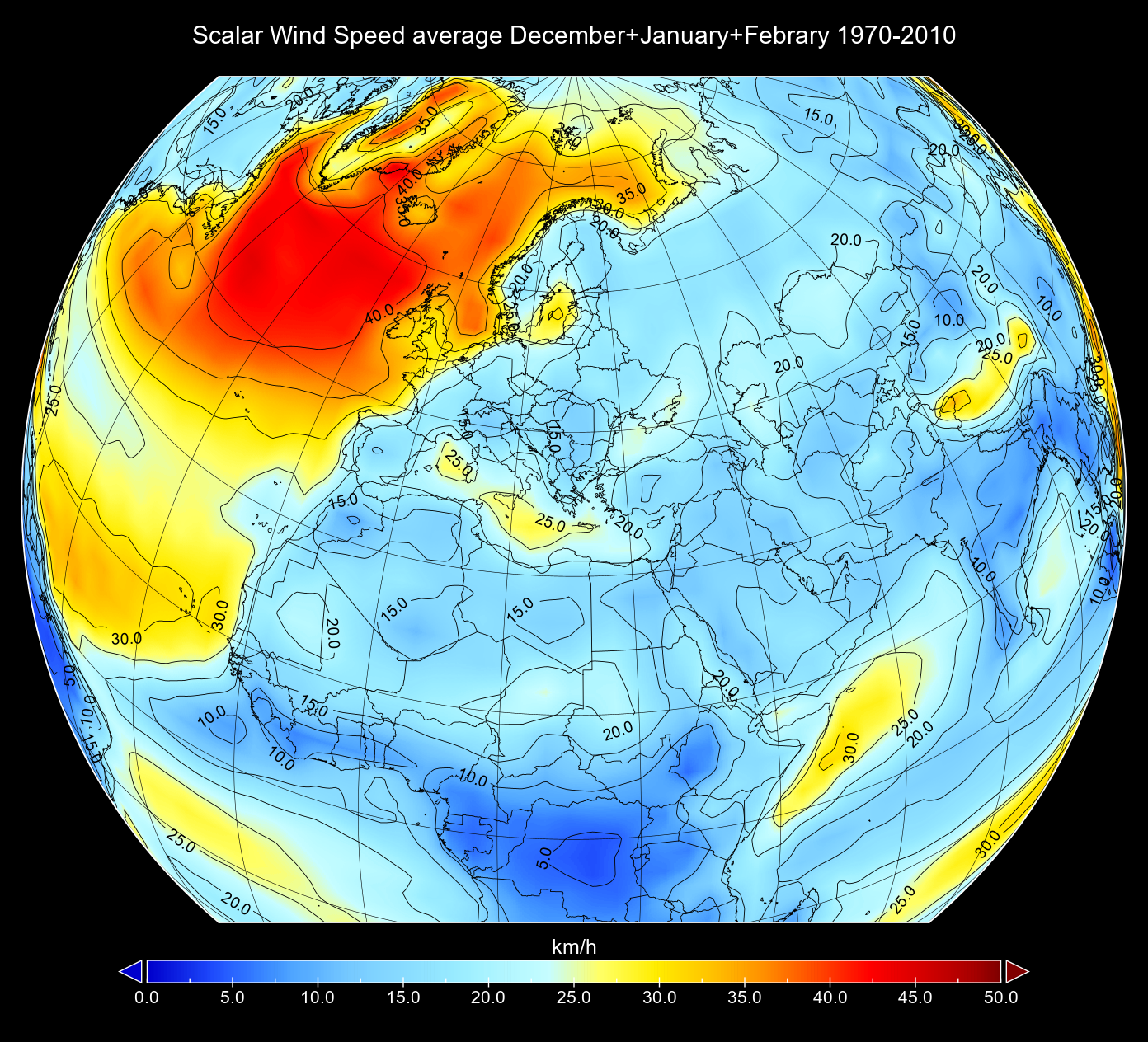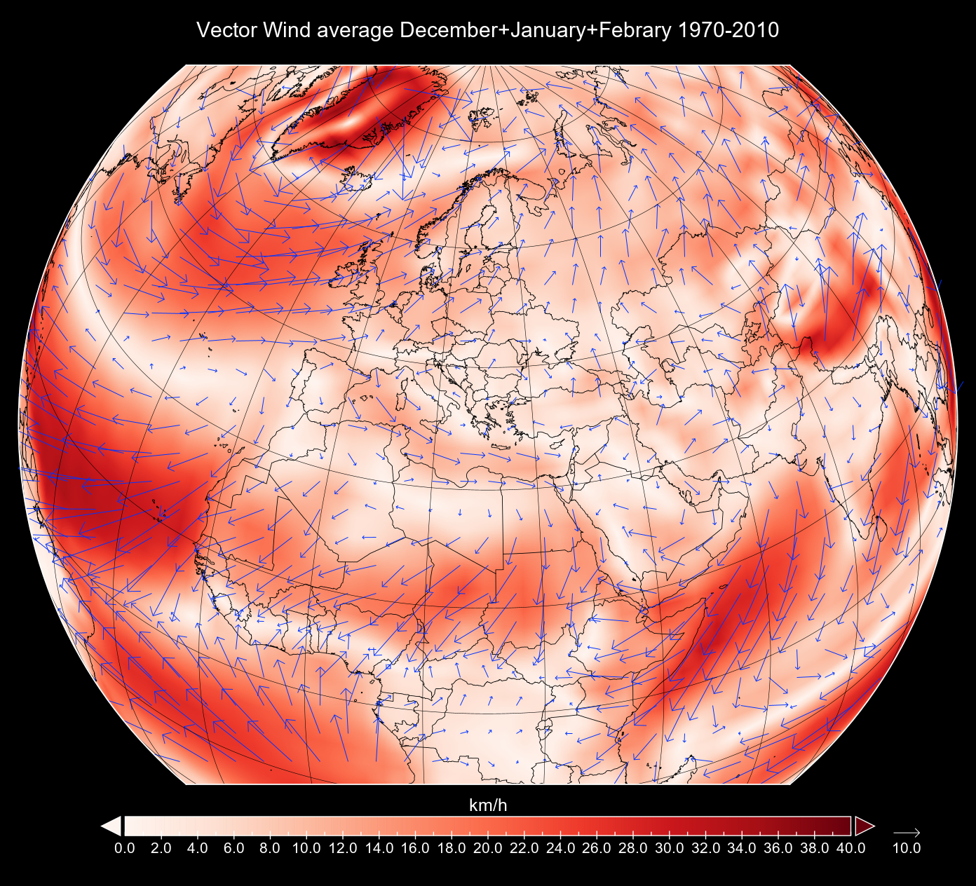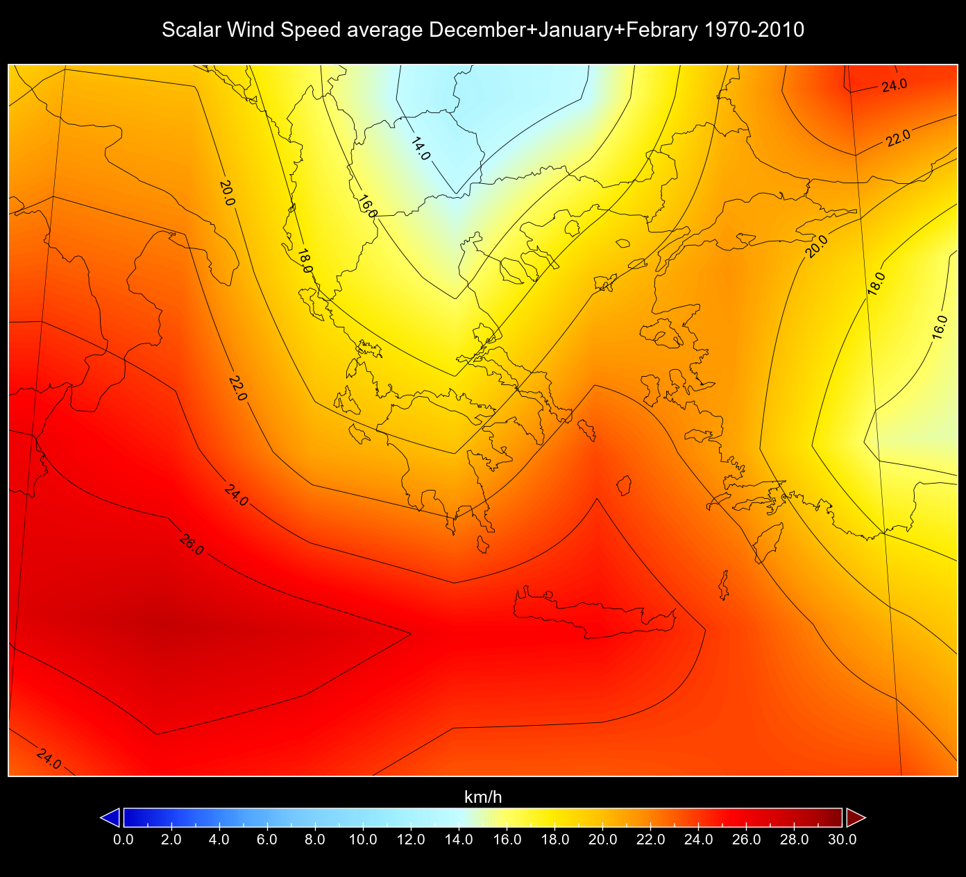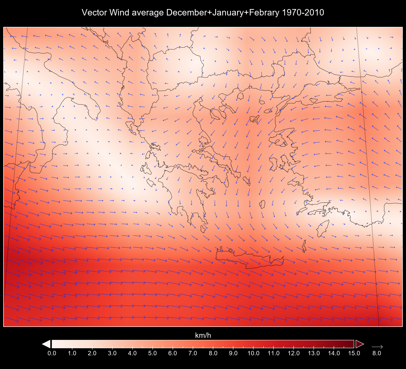 Εδω φαινονται και οι ανεμοι που επικρατουν στην Ελλαδα τους 3 μηνες του χειμωνα(κλιματολογια περιοδου 1970 εως 2010) και ως μεσες τιμες εντασεως ανεμου(scalar wind) και ως μεσες τιμες του διανυσματικου ανεμου(vector wind).